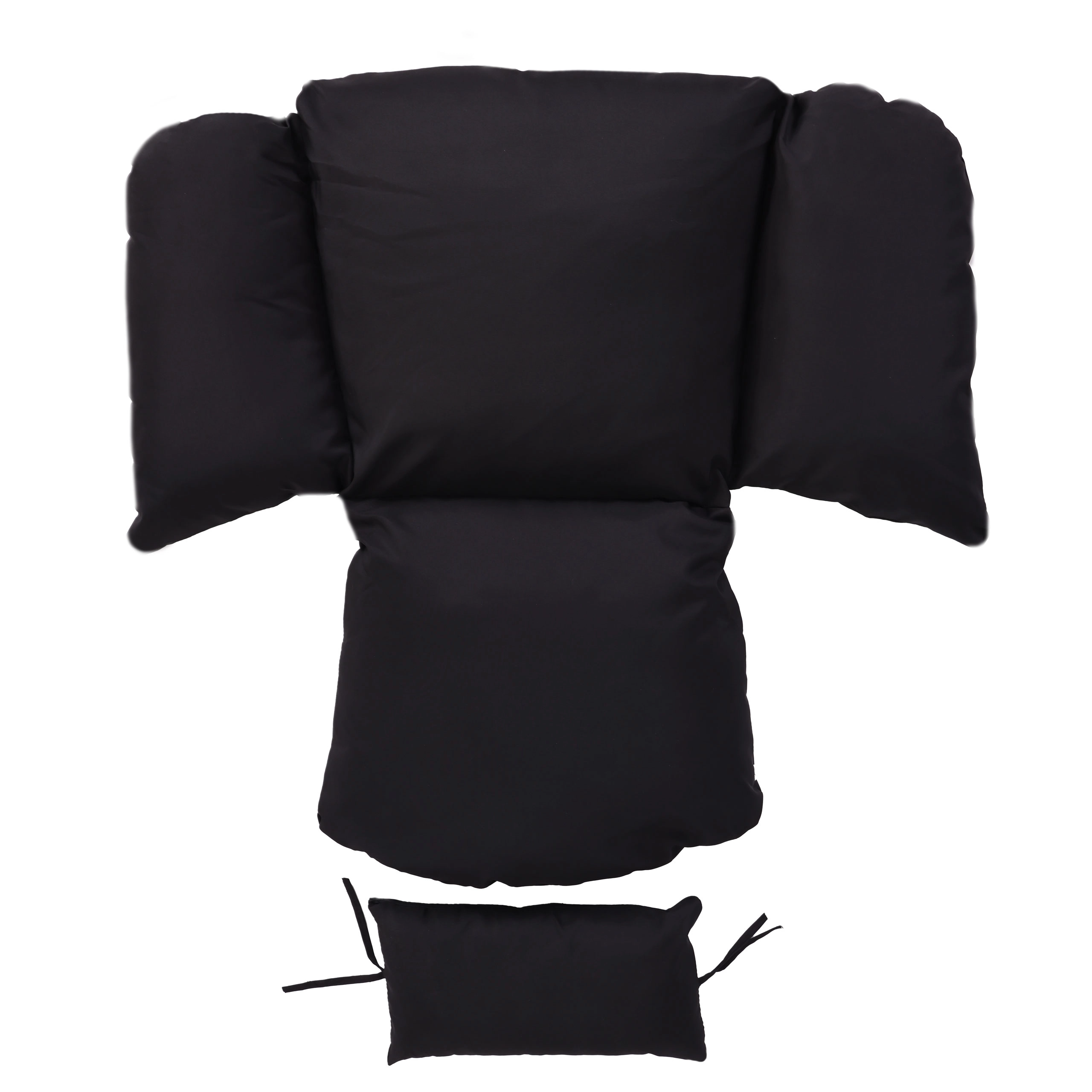 Priložene so mehke blazine debeline približno 15 cm in odstranljive prevleke za enostavno vzdrževanje. Vzglavnik lahko zavežete na okvir, da ostane natančno tam, kjer ga želite. Zahvaljujoč nosilnosti 120 kg in univerzalnim meram je stol primeren za terase, vrtove in balkone.