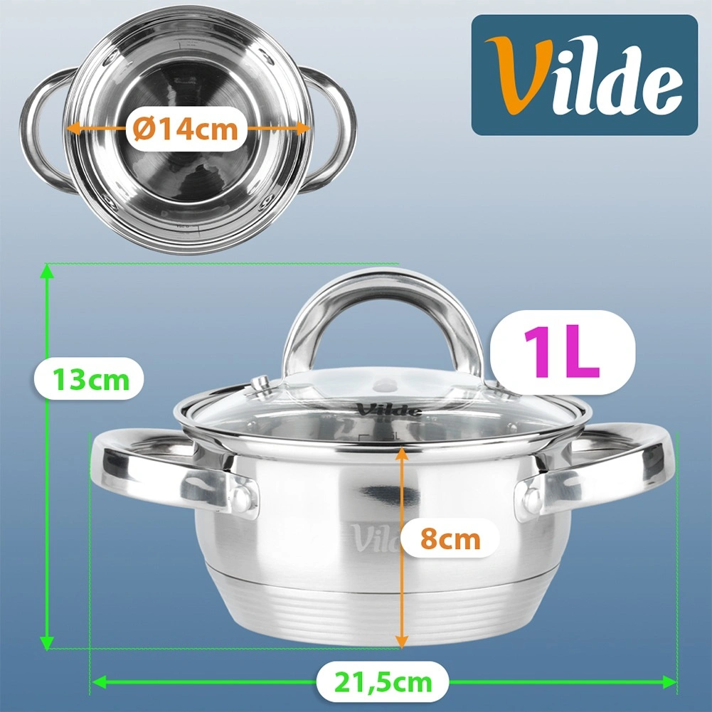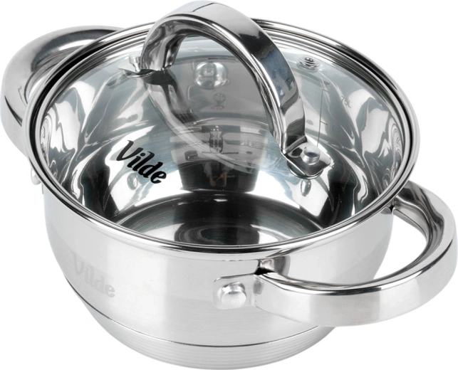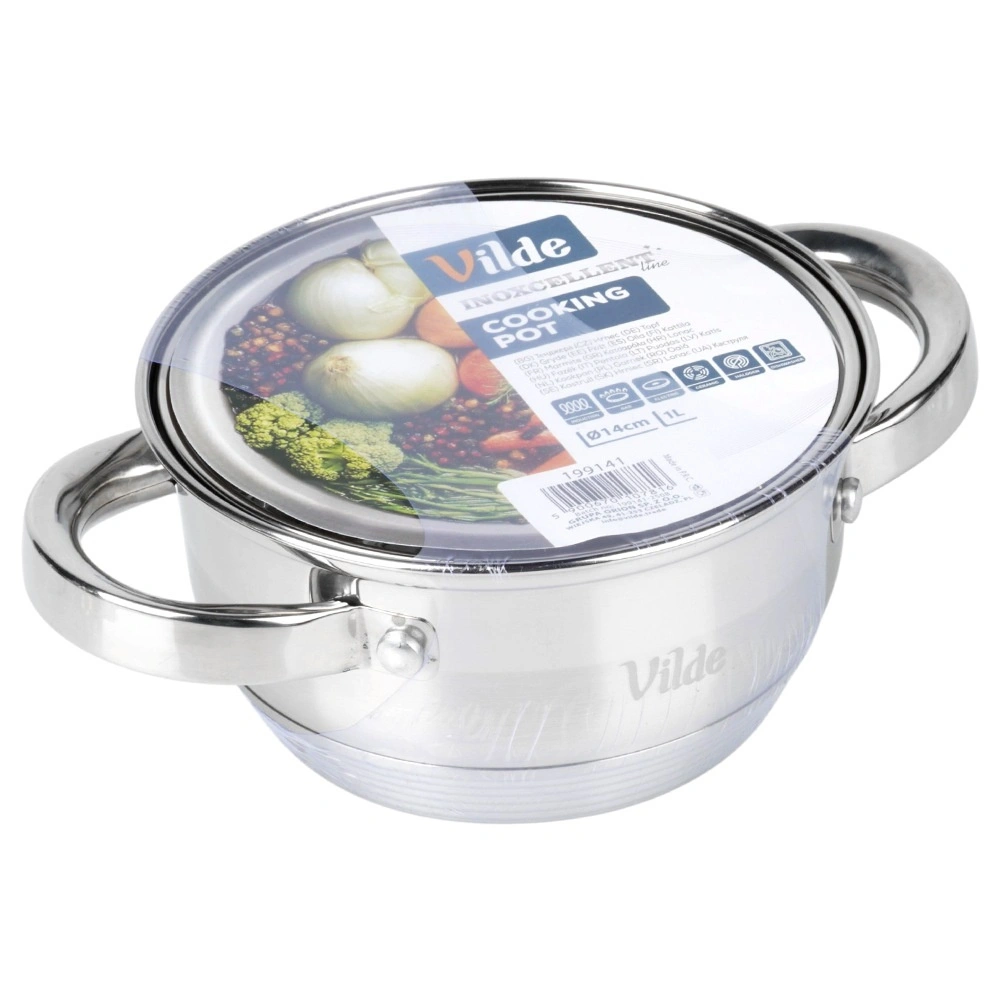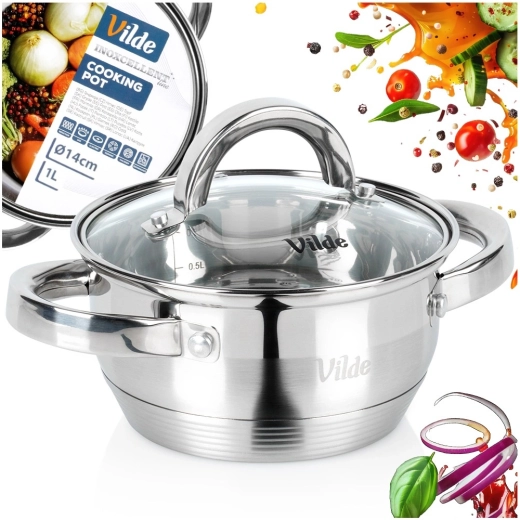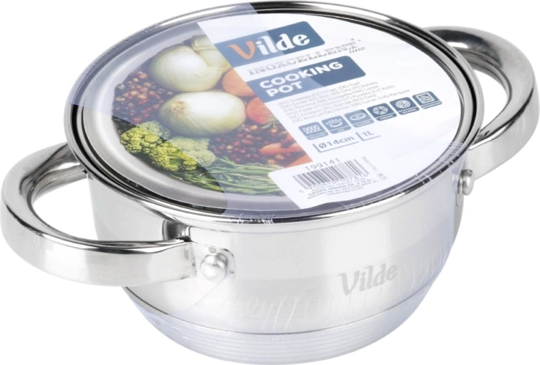 Kompakten nerjavni lonček s prostornino 1 l in premerom 14 cm z vzdržljivim steklenim pokrovom je idealen za manjše porcije. Zahvaljujoč akutermičnemu dnu enakomerno porazdeljuje toploto, je primeren za vse tipe štedilnikov, vključno z indukcijo, ter omogoča tudi peko v pečici do 150 °C. Ventil v pokrovu olajša nadzor kuhanja in preprečuje prekipevanje. Nerjavno jeklo zagotavlja dolgo življenjsko dobo in enostavno čiščenje v pomivalnem stroju.