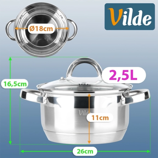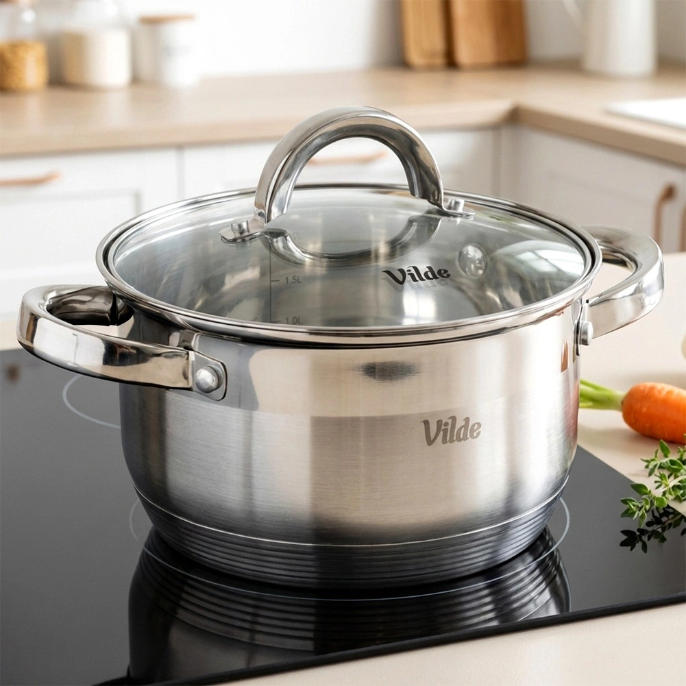 Odkrijte zanesljiv nerjavnojeklen lonec iz linije Vilde INOXCELLENT, zasnovan za vsakodnevno kuhanje, dušenje in zapečene jedi. Steklen pokrov s parnim ventilom omogoča nadzor jedi brez dvigovanja, medtem ko večslojno akutermično dno »Maximum Power« zagotavlja hitro in enakomerno porazdelitev toplote.