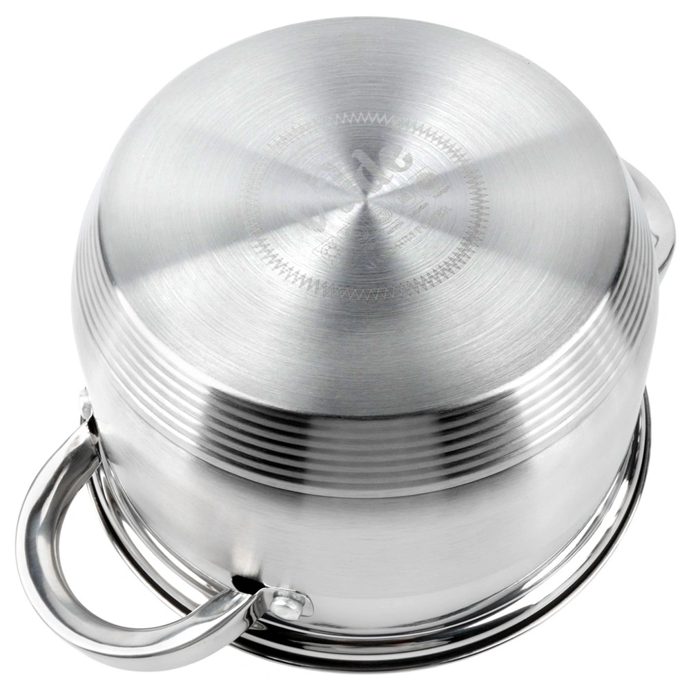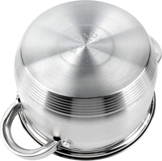 Praktičen nerjavnojeklen lonec s prostornino 2,5 l in premerom 18 cm s prozornim pokrovom za preprosto kontrolo kuhanja. Zahvaljujoč akutermičnemu dnu enakomerno porazdeljuje toploto, omogoča hitro segrevanje in je energetsko varčen. Primeren za vse vrste štedilnikov, vključno z indukcijo, možno pomivanje v pomivalnem stroju in uporaba v pečici do 150 °C.