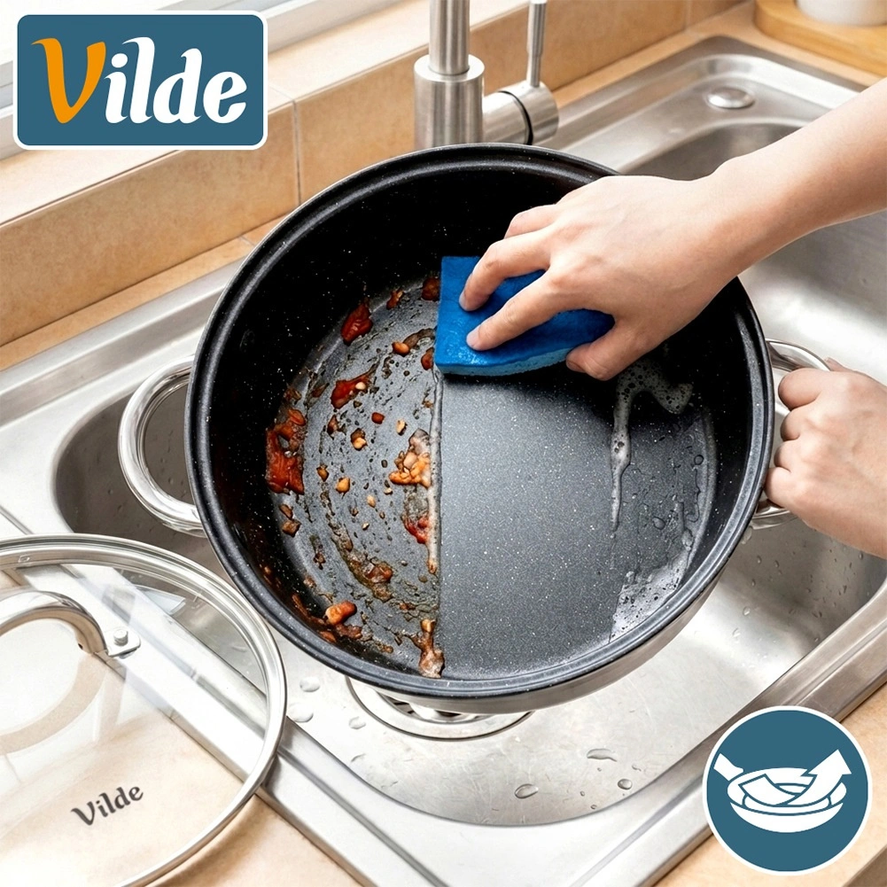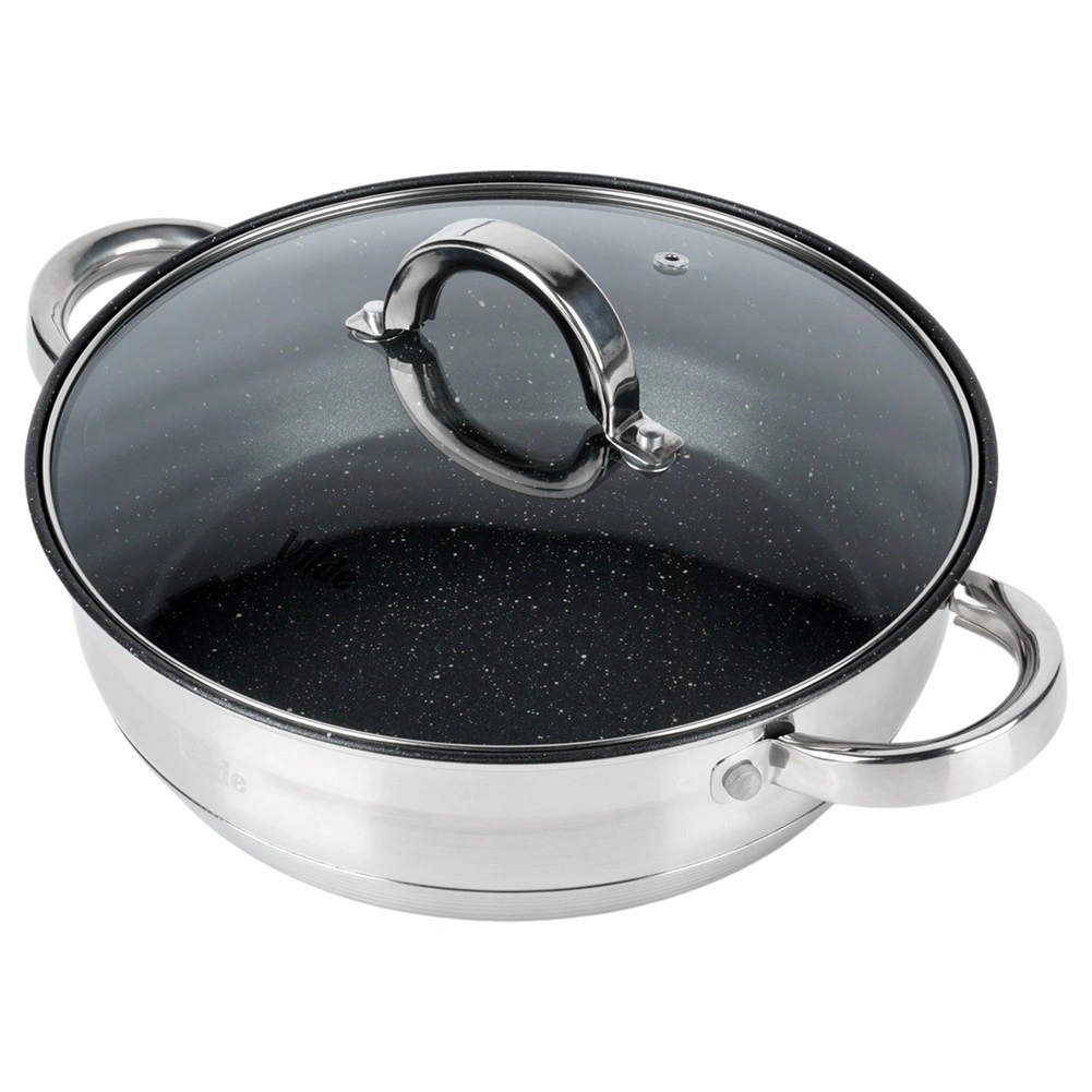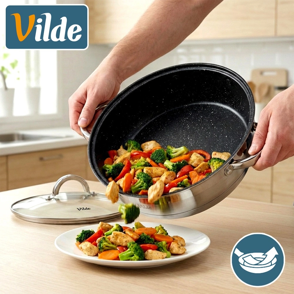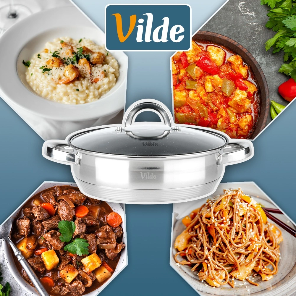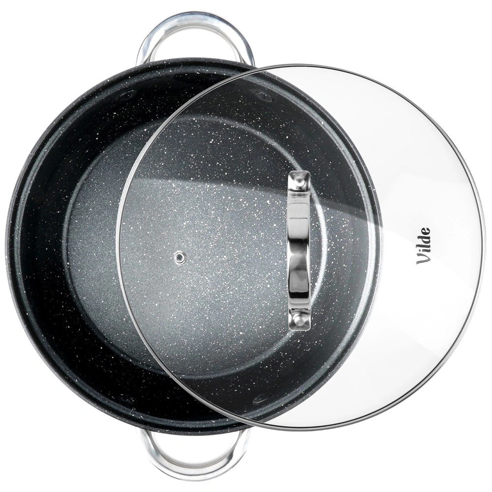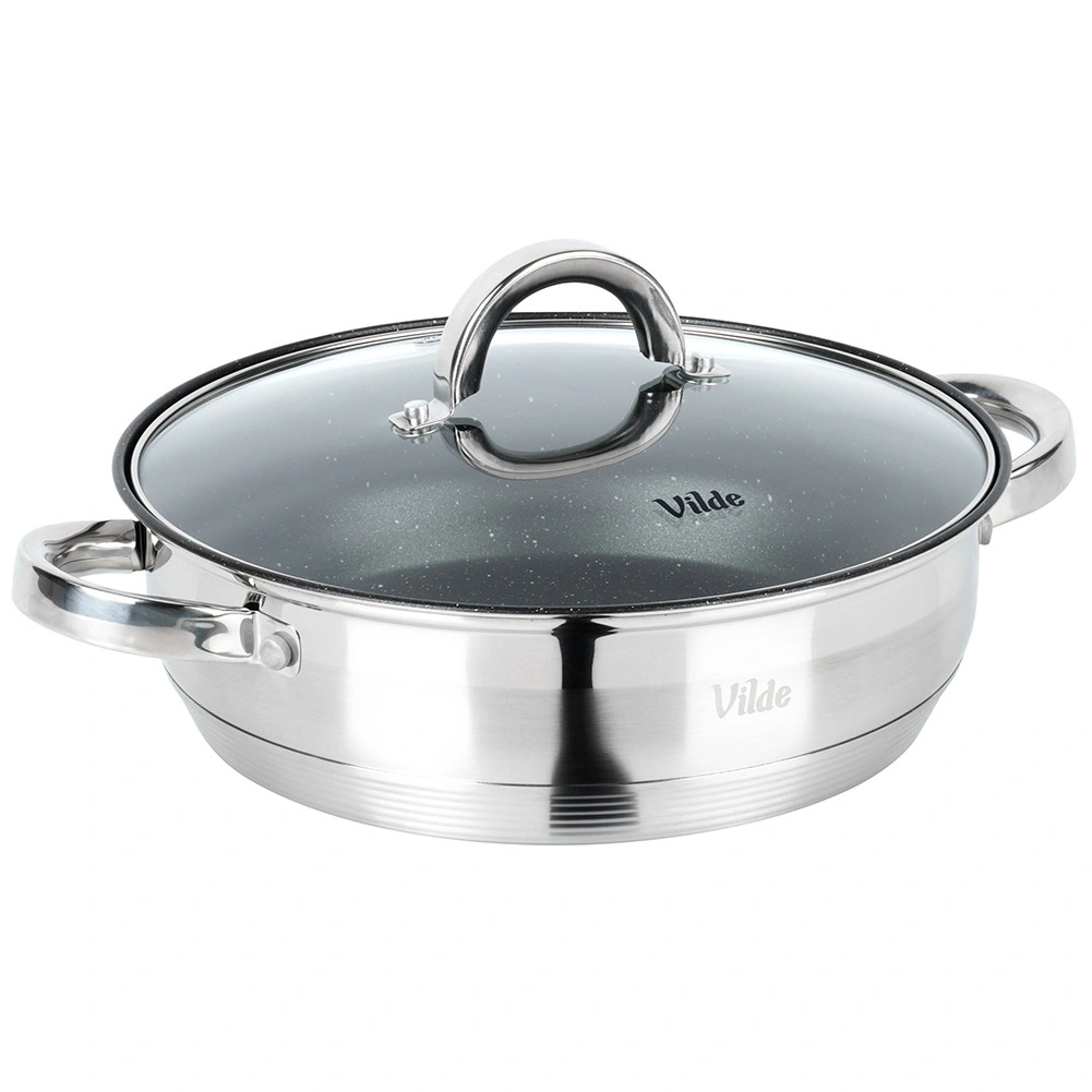 Notranjost ponve je opremljena z odporno neprijemljivo plastjo z granitnim učinkom, zunanjost pa združuje mat in visoko polirano obdelavo. Izdelek izpolnjuje evropske standarde kakovosti. Originalni izdelek znamke Vilde iz linije INOXCELLENT.