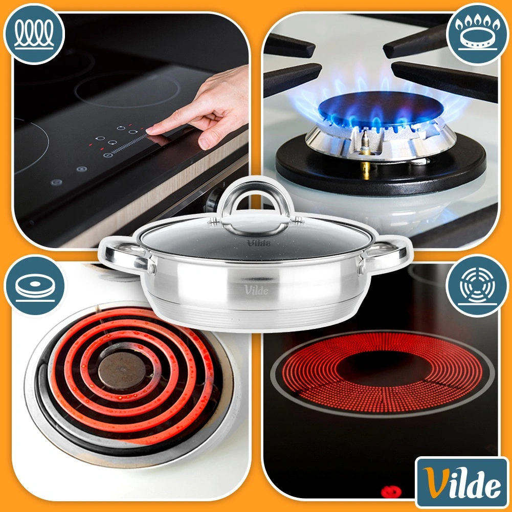 - Univerzalna uporaba na indukciji, plinu, elektriki, halogenu in steklokeramiki, v pečici do 150 °C