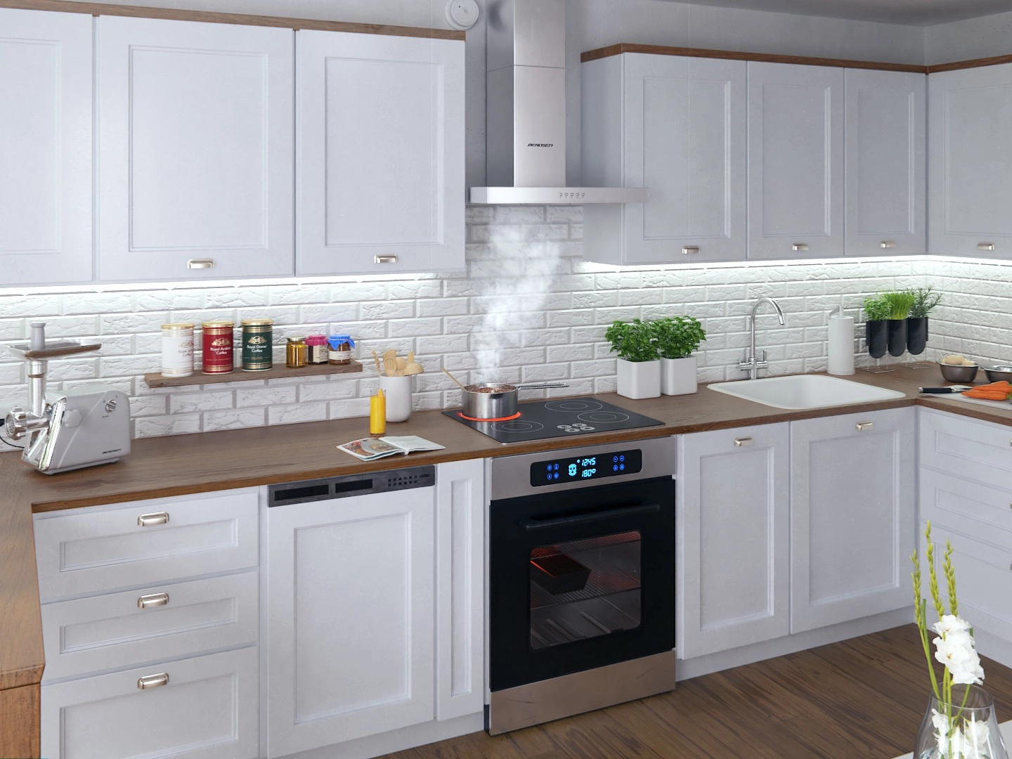 - LED SMD osvetlitev – varčna, naravna svetloba nad kuhalno ploščo