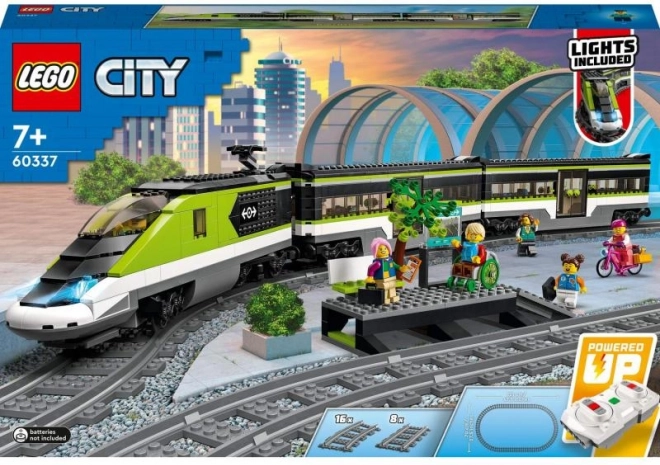 Zgradite lastno železnico z LEGO CITY hitrim vlakom 60337. Pridobite daljinsko upravljano lokomotivo z zatemnitvenimi žarometi (Powered Up), restavracijski in potniški vagon, peron, 24 kosov tirov in 6 minifigur za neskončne zgodbe in ustvarjalno igro.