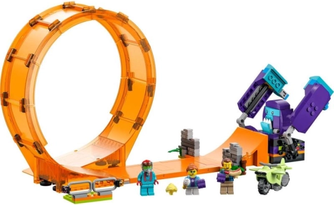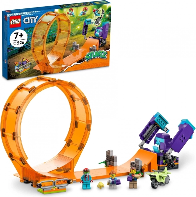 Vstopite v svet kaskaderjev z LEGO City Šimpanzovo kaskadersko zanko. Dominantna orjaška zanka, funkcionalna rampa in mehanični šimpanz ustvarijo sceno za vznemirljive kaskaderske podvige. Motor z vztrajnikom se požene z bliskovito hitrostjo in zmore tudi zahtevne premete skozi zanko.