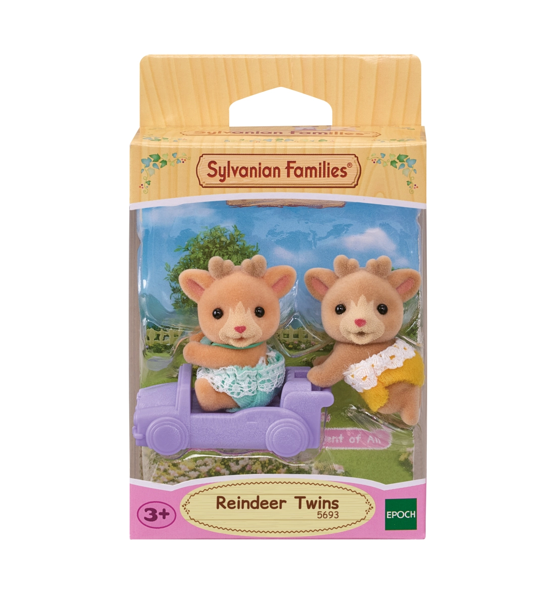 Prisrčna dvojčka jelenov SYLVANIAN FAMILIES z majhnim avtomobilčkom bosta razveselila vsakega malega pripovedovalca zgodb. Figurici Ollie in Ginger imata mehak semišast (flock) površinski premaz, premične glavice in odstranljive oblekice s čipko. Priloženo je tudi vijolično vozilce, ki ga lahko kombinirate z drugimi seti dvojčkov. Odlično za razvoj domišljije, igranje vlog in fino motoriko. Primerno od 3 let naprej.