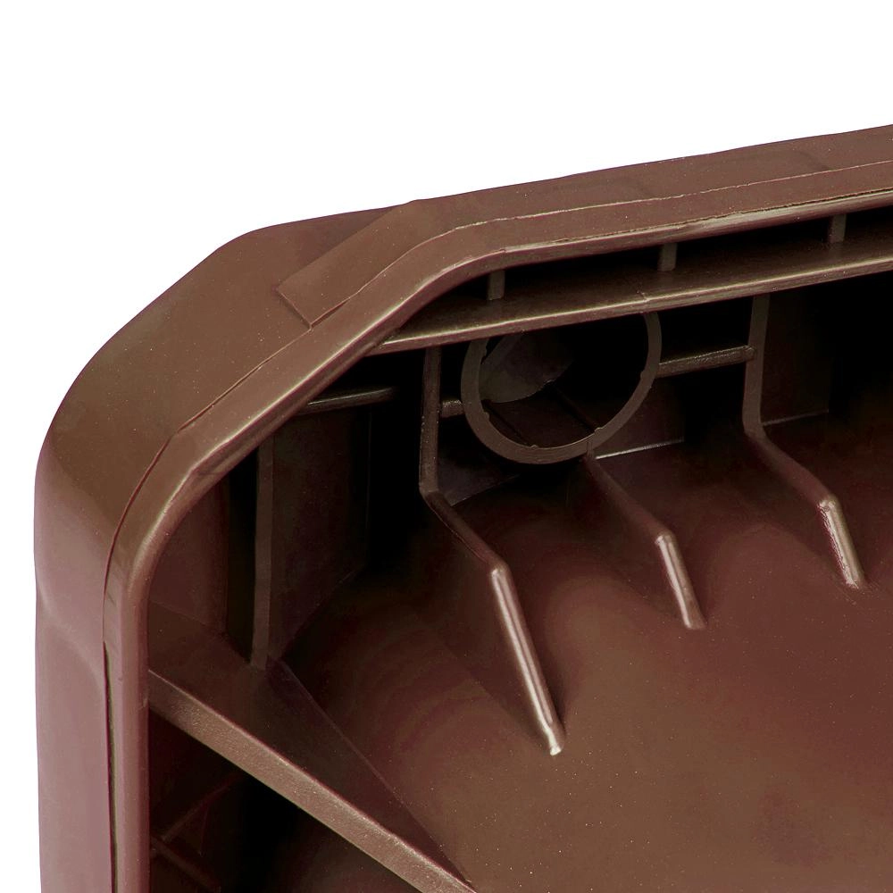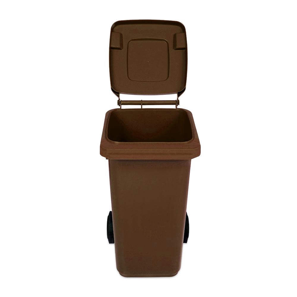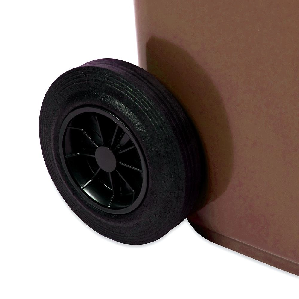 Ta robusten 120-litrni plastični koš je zasnovan za vsakodnevno uporabo pri družinskih hišah, podjetjih in obratih. Rjava izvedba je primerna za ločeno zbiranje bioloških odpadkov v skladu z občinskimi standardi, hkrati pa je primerna tudi za običajne komunalne odpadke. Gladka, a trdna površina iz odporne plastike kljubuje vremenskim vplivom in se zlahka čisti.