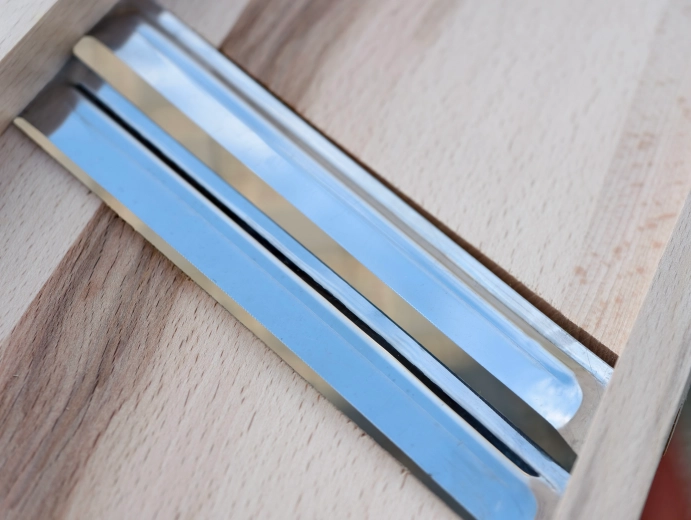 - Masiven naravni les, nerjavna jekla (noži)