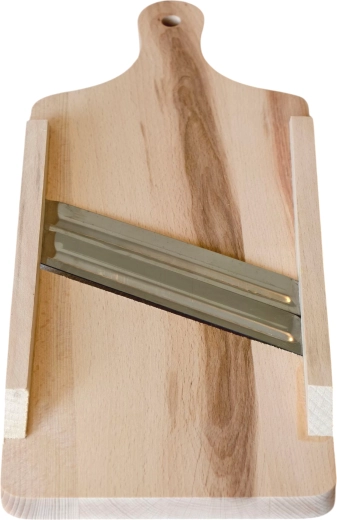 Odkrijte zanesljivega pomočnika za domačo obdelavo zelenjave. To leseno strgalo za zelje združuje trden naravni les in nerjavna rezila, ki zagotavljajo gladke in enakomerne rezine. Zahvaljujoč priročnim meram 41 × 16 cm je udobno za uporabo nad skledo ali loncem ter idealno za pripravo kislega zelja in druge zelenjave.