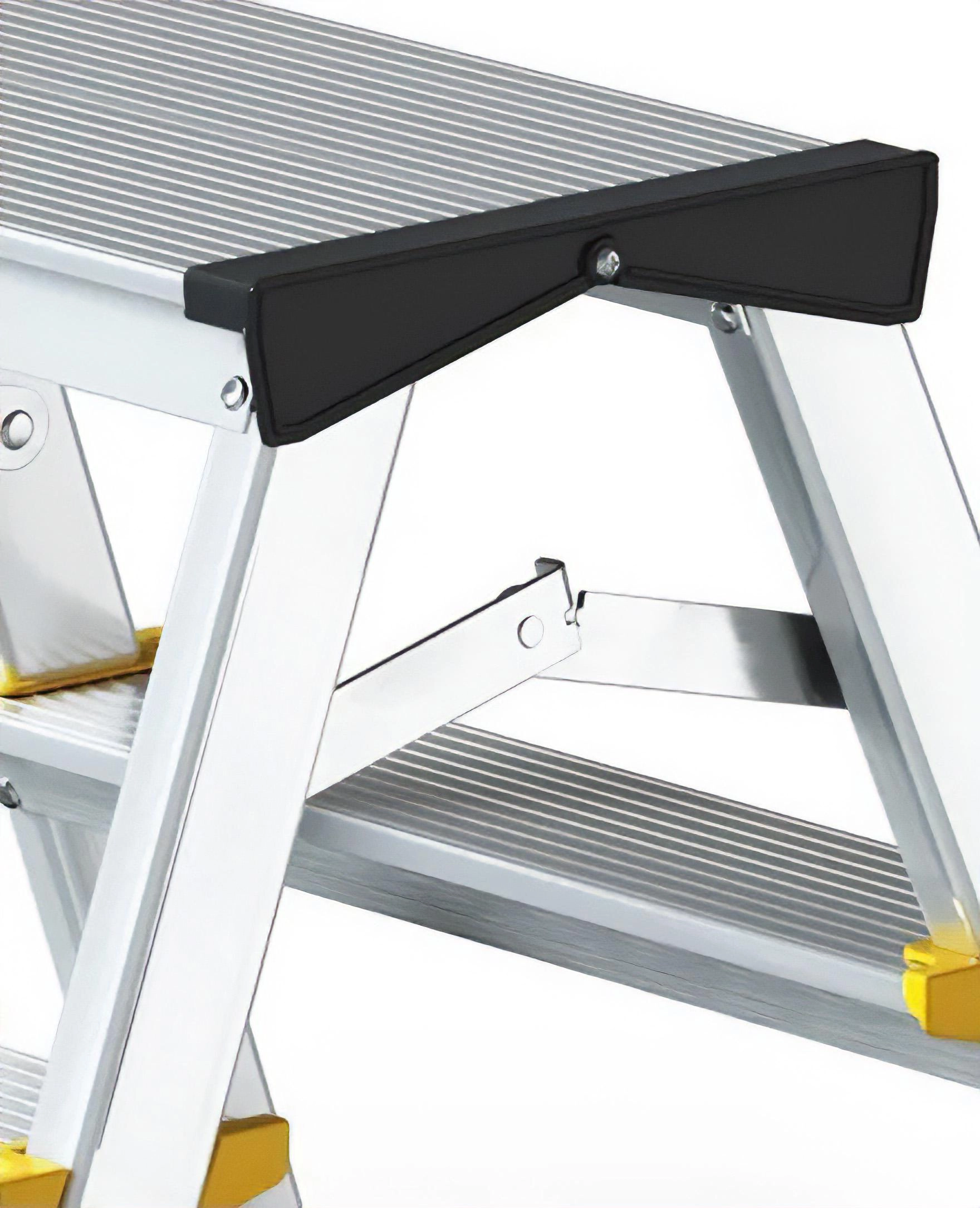 Te dvostranske stopnice PROFI 2x4 so zasnovane za zahtevne uporabnike, ki potrebujejo stabilnost, varnost in dolgo življenjsko dobo. Aluminijasta konstrukcija z ojačitvami, nedrseče nogice in široke rebraste stopnice zagotavljajo trden korak in udobje pri vsakodnevni uporabi.