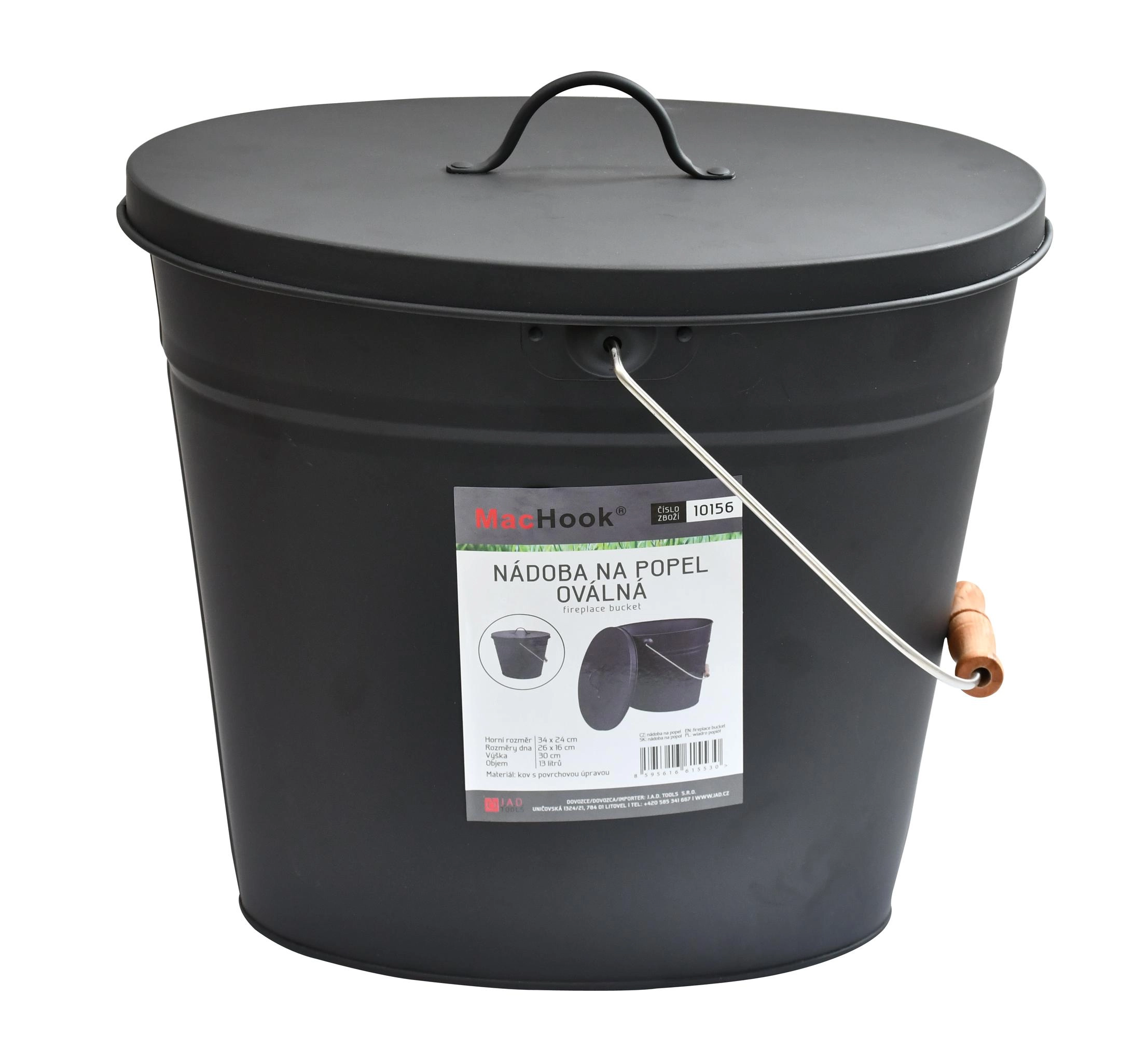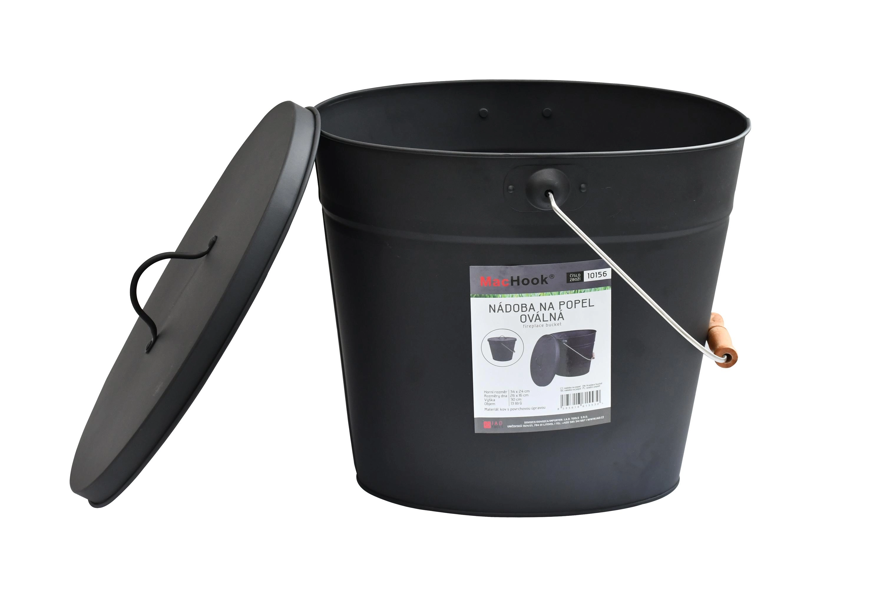 Praktična kovinska posoda za pepel s prostornino 13 litrov, ovalno obliko in stabilnimi merami za varno shranjevanje pepela iz kaminov in peči. Ponuja stabilno dno, dobro prilegajoč se pokrov ter vzdržljivo debelino materiala 0,32 mm za dolgo življenjsko dobo.