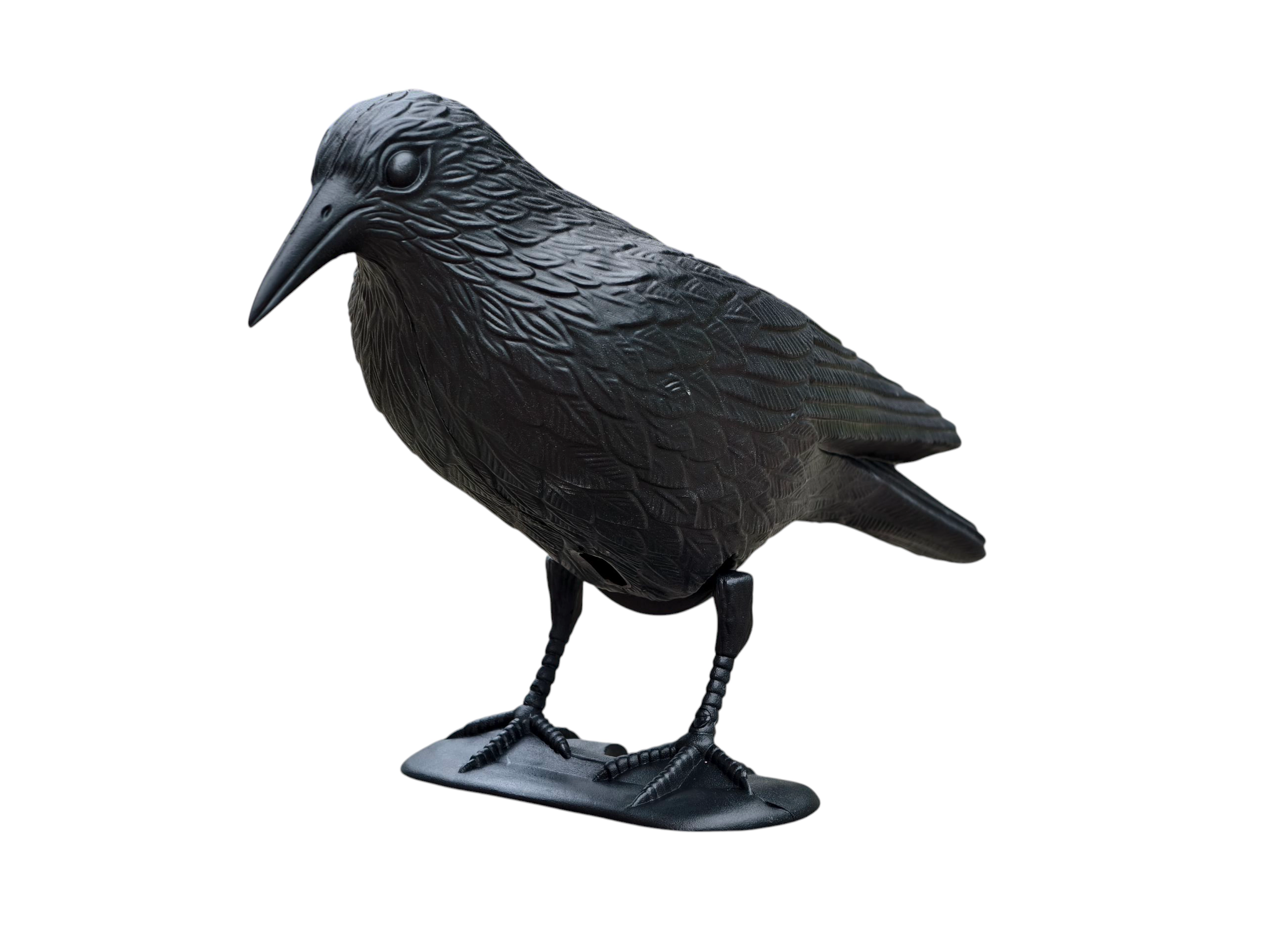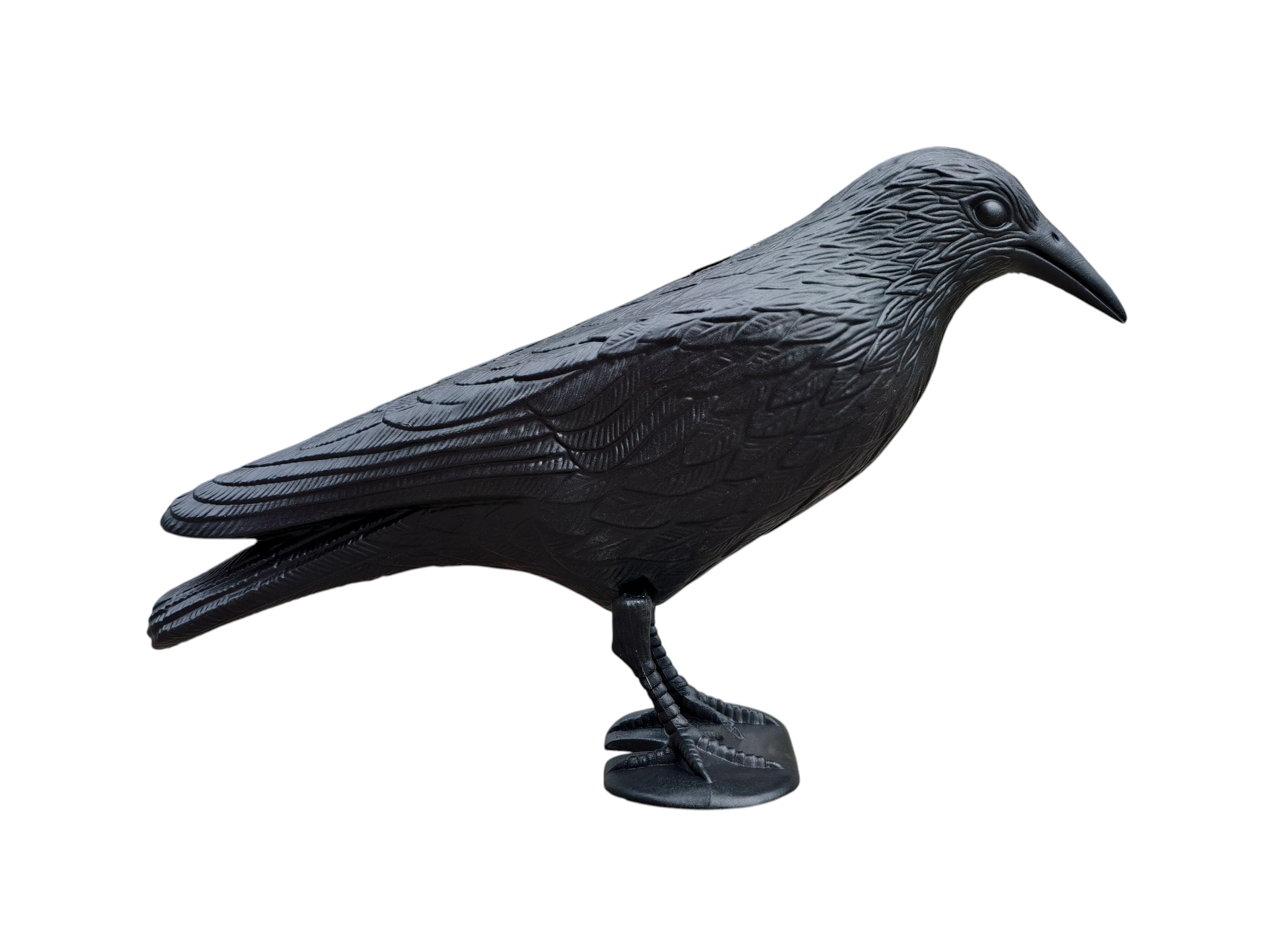 Podrobna struktura perja in naravne proporcije posnemajo pravega krokarja, kar poveča odvračilni učinek na nezaželene ptice.