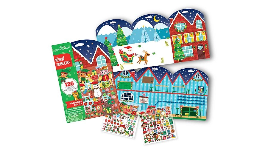 Odkrijte čar božiča s kreativnim kompletom penastih nalepk CONCORDE. Pakiranje vsebuje 126 večkrat uporabnih nalepk z motivom božične delavnice in obojestransko zložljivo igralno podlago. Nalepke držijo na gladkih površinah brez lepila, zato jih lahko poljubno prestavljate. Otroci pri igri razvijajo fino motoriko, domišljijo in ustvarjalnost.