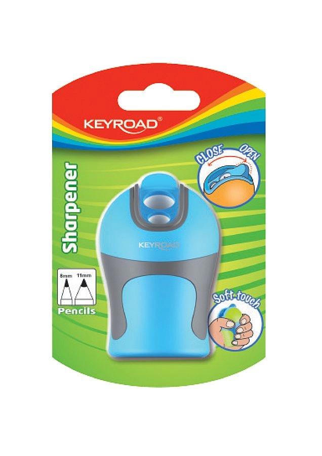 Šilček KEYROAD je zanesljiva izbira za šolo, pisarno in dom. Zahvaljujoč odpirajoči zasnovi in velikokapacitetni posodici ostane delovna površina čista, šiljenje pa bo hitro in brez nereda. Dve natančno brušeni odprtini s premeroma 8 mm in 11 mm zmoreta standardne in debelejše grafitne svinčnike.