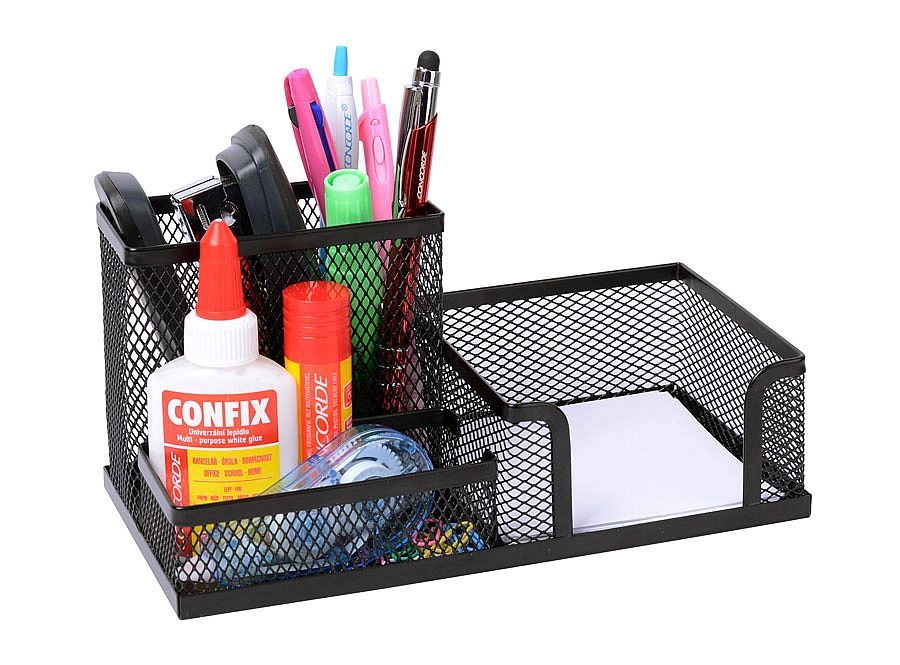 - Stojalo za svinčnike, predalček za pisarniške pripomočke, kocka za zapiske