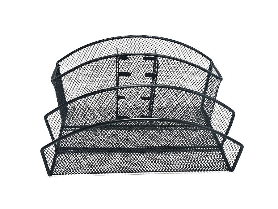 Praktičen kovinski organizator je idealen za vsakodnevno uporabo v pisarni, domači delovni sobi ali v šoli. Zaradi petih jasno razdeljenih predalčkov boste zlahka shranili svinčnike, kemične svinčnike, škarje, označevalnike in drobne pisarniške pripomočke. Trpežna žičnata konstrukcija zagotavlja dolgo življenjsko dobo in preprosto vzdrževanje.