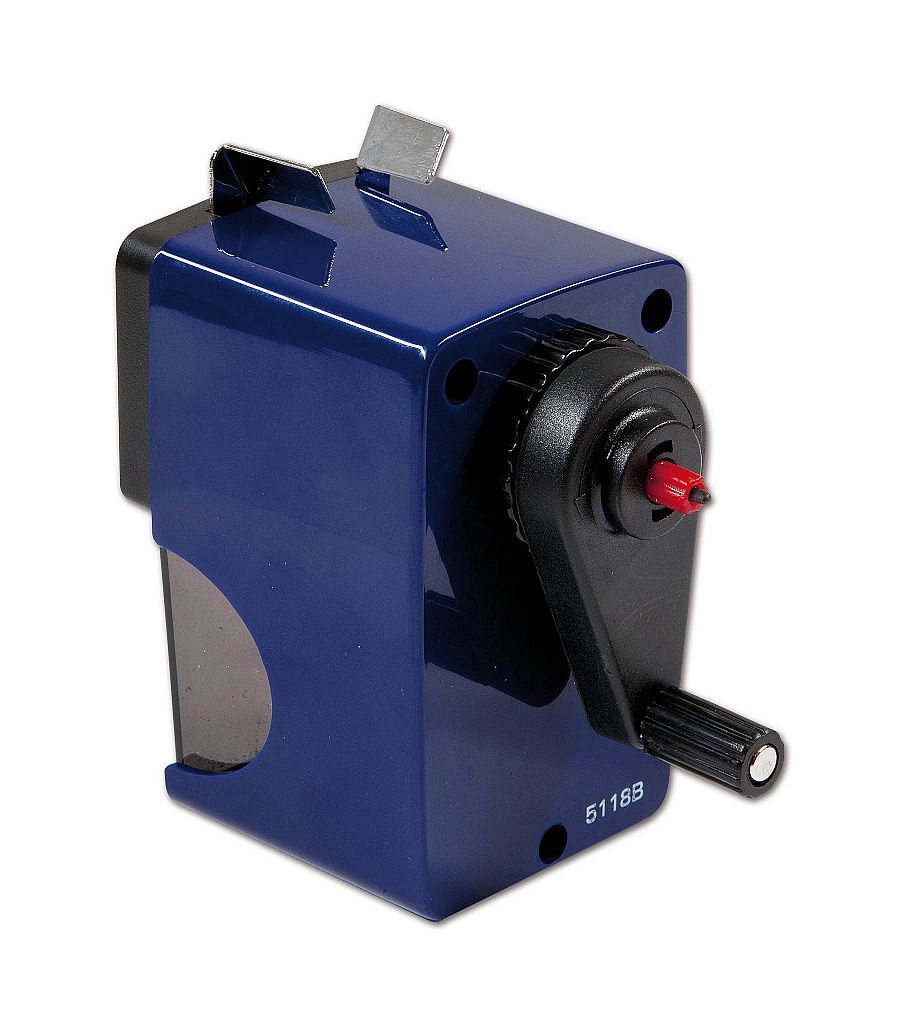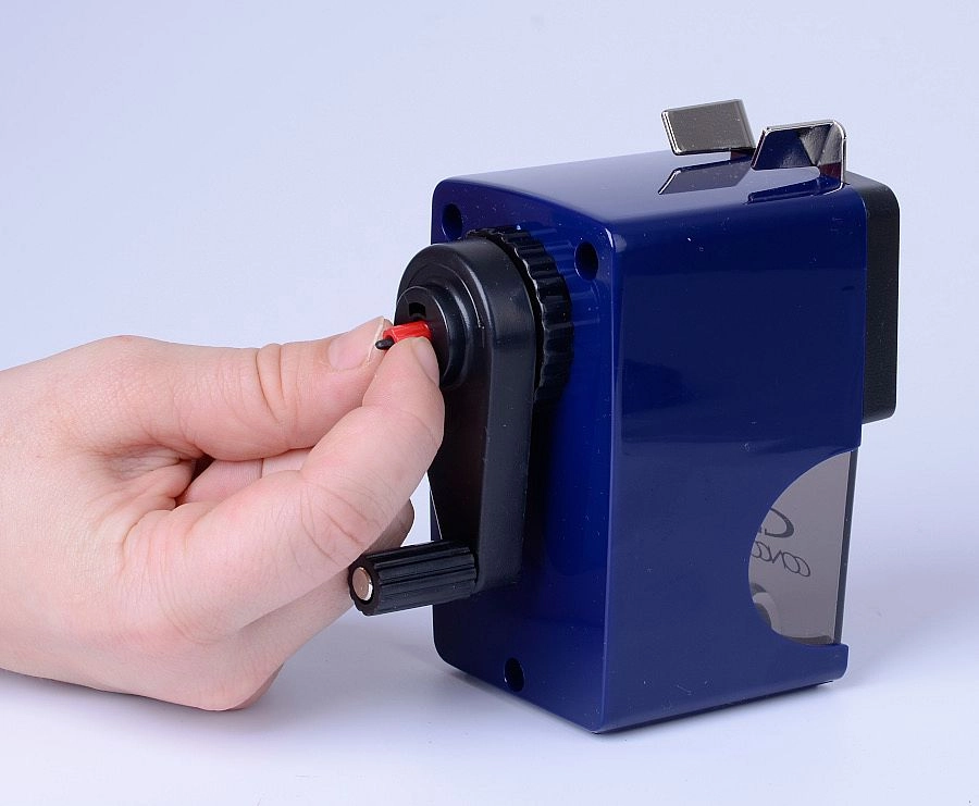 Praktičen namizni šilček z ročico za tanke in JUMBO svinčnike s premeri 7, 10 in 12 mm. Ponuja samodejni pomik svinčnika pri šiljenju, preprosto sprostitev zlomljene mine s priloženim trnom in možnost čvrstega pritrjevanja na delovno mizo za stabilno in varno uporabo.