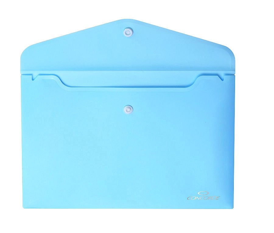 Praktične mape za dokumente v formatu A5 v elegantni pastelno modri barvi za pregledno in varno shranjevanje dokumentov. Izdelane iz odpornega polipropilena debeline 180 mikronov z kakovostnim gumbom za zanesljivo zapiranje. Idealne za arhiviranje in prenos dokumentov v šolo in pisarno.