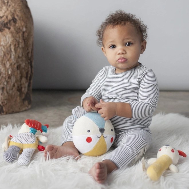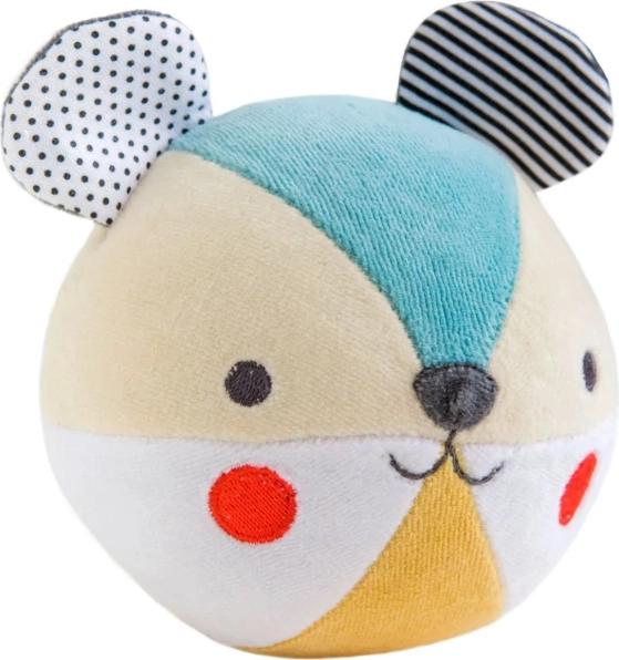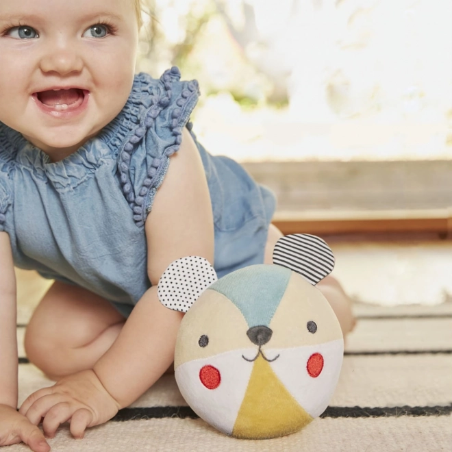 Mehka tekstilna ropotuljica v obliki medvedka dojenčkom nudi nežne zvočne dražljaje in prijeten, varen oprijem. Zahvaljujoč organskim materialom je primerna tudi za občutljivo kožo ter podpira razvoj fine motorike in senzoričnega zaznavanja.