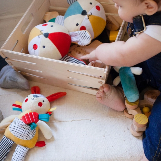 Dizajn PETIT COLLAGE združuje kontrastne vzorce in živahne barve za vizualno stimulacijo, medtem ko lahka zasnova olajša držanje z drobnimi rokicami. Trajnostna izbira za starše, ki iščejo varno in ekološko igračo za novorojenčke.