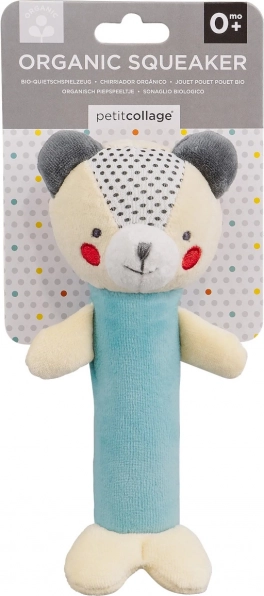 Prisrčna piskajoča ropotuljica v obliki medvedka znamke Petit Collage pomaga otrokom razvijati fino motoriko in čutno zaznavanje. Je mehka, enostavna za prijem malih rok in izdelana iz organskega bombaža s certifikatom GOTS z rastlinskimi barvili – idealna za vsakodnevno igro in zabavo na poti.