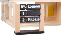 Odkrijte realistično železniško postajo, ki spodbuja domišljijo, igro vlog in fino motoriko. Robustna zasnova iz certificiranega FSC lesa in premišljene podrobnosti, kot so avtomat za vozovnice, vozni red na tabli in trgovinica, zagotavljajo ure zabave. Odprta streha omogoča dostop do vseh igralnih con in olajša skupno igro več otrok hkrati.