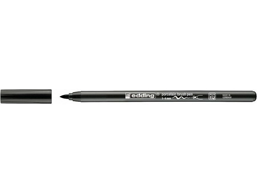 Okrasite porcelan, glazirano keramiko in ognjevarno steklo preprosto in čisto s flomastrom EDDING 4200 v črni barvi. Fleksibilna čopičasta konica omogoča tako fine detajle kot tudi široke poteze. Vodno pigmentno črnilo se hitro suši, je pred žganjem popravljivo, po žganju pa trajno odporno in barvno obstojno.