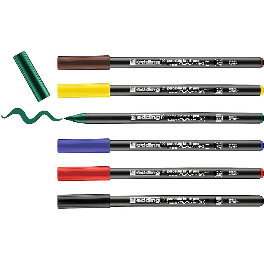Odkrijte ustvarjalni komplet označevalnikov edding 4200 za okraševanje porcelana, glazirane keramike in ognjevarnega stekla. Zahvaljujoč prožnemu čopičastemu vrhu 1–4 mm boste brez težav ustvarili fine detajle in večje ploskve, vodni pigmentni črnilo se hitro suši in je popolnoma popravljivo pred žganjem. Po žganju v domači pečici je dekor trajnostno odporen in barvno obstojen.