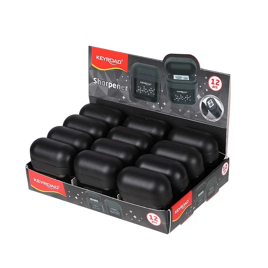 Šilček Keyroad AirDuo je zanesljiv pomočnik za šolo, pisarno in dom. Dva različna premera odprtin (8 mm in 11 mm) zlahka obvladujeta klasične in debelejše barvice ter grafitne svinčnike. Zapiralni pokrovček in vgrajen zbiralnik odrezkov zmanjšujeta nered in olajšujeta vzdrževanje.