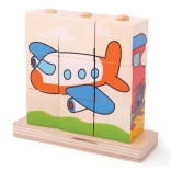 Lesena sestavljanka Bigjigs Baby Prometni sredstva je idealna igrača za razvoj motoričnih sposobnosti in koordinacijo rok in oči pri otrocih. Vsebuje 10 kosov lesenih blokov s četverimi prometnimi prizori: vlak, avto, traktor in letalo.