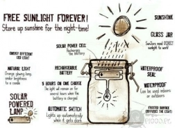Lučka uporablja sončni panel na pokrovu za polnjenje čez dan, kar omogoča ekološko večerno osvetlitev.