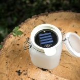 S preprostim postavitvijo na sončno mesto čez dan se lučka popolnoma napolni in nudi prijetno svetlobo po sončnem zahodu. Ustvarite prijetno vzdušje z dizajnom, ki spominja na tradicionalni kozarec za vlaganje. Zaradi svoje kompaktne oblike je ta lučka enostavno prenosljiva in primerna tudi kot izvirno darilo.