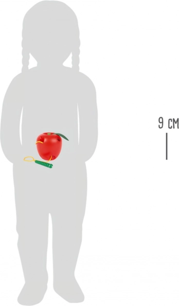 Lesena igrača v obliki jabolka z odprtinami nudi zabavno in izobraževalno aktivnost za majhne otroke. S pomočjo prevezovalne igre se otroci učijo natančnosti in potrpežljivosti, kar je pomembno za njihovo fino motoriko. Igrača je zasnovana tako, da otroke zabava in hkrati spodbuja njihov razvoj.
