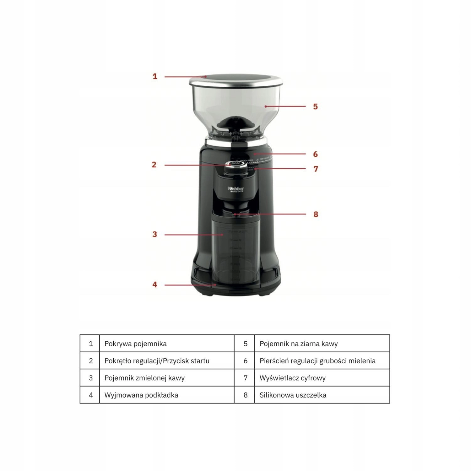 Uživajte vsak dan v sveže mleteni kavi z električnim mlinčkom WEBBER CG6. Zahvaljujoč 25 stopnjam mletja, jeklenim stožčastim brusnim kamnom in tehnologiji V‑Cone dosežete enakomerno mletje za espresso, filter in french press. Tih tek, stabilna konstrukcija in praktični adapterji za portafilter poenostavijo vsakodnevno pripravo vaše najljubše kave.