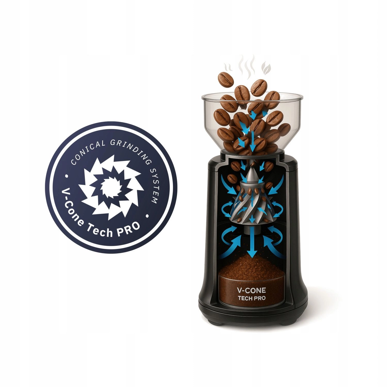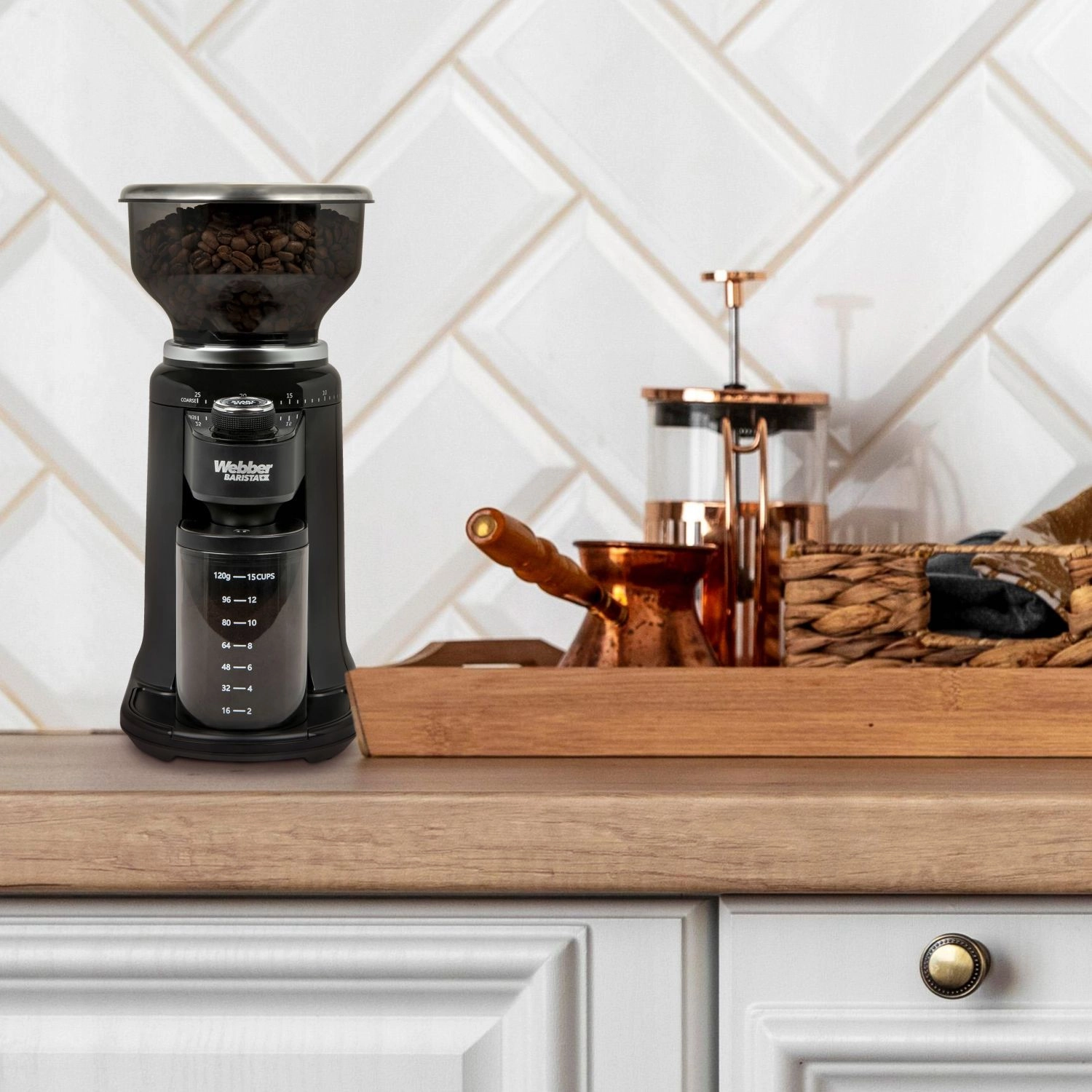 WEBBER CG6 odpira pot do polnega okusa in arome vaših kavnih zrn. S pomočjo natančne regulacije 25 stopenj grobosti boste zlahka nastavili idealno mletje za espresso, mokiško džezvo, prekapni aparat in french press. Stožčasti jekleni kamni s tehnologijo V‑Cone zagotavljajo enakomerno mletje za boljšo ekstrakcijo in dosleden rezultat v vsaki skodelici.