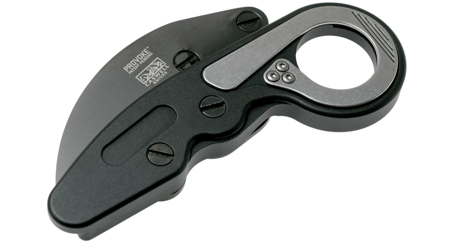 Inovativni karambit CRKT Provoke Black oblikovalca Joeja Caswella združuje taktično obrambo z EDC praktičnostjo. Opremljen je z ukrivljenim rezilom iz jekla D2 z mat titanovo površinsko obdelavo v črni barvi ter robustnim aluminijastim ročajem 6061‑T6 s sponko za žep. Zahvaljujoč edinstvenemu ročičnemu mehanizmu se odpira z eno roko in se varno zaklene.