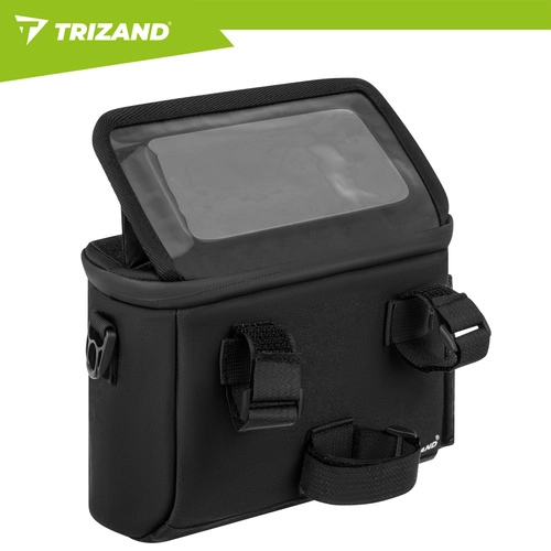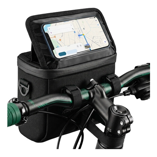 Imejte telefon vedno pri roki in stvari na varnem s kolesarsko torbo TRIZAND za krmilo, ki združuje držalo za telefon s prozornim okencem in prostorno vodoodporno torbo. Zahvaljujoč trdnemu pritrjevanju z ježki, možnosti nastavitve kota telefona in več žepom za pregledno organizacijo je idealna za vsako vožnjo in vreme.