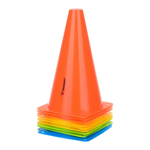 Trening stožci TRIZAND so praktične in trpežne športne označbe za hitro določanje prog, con in vaj. Zahvaljujoč intenzivnim barvam ter lahki, elastični zasnovi so odlično vidni tako na igrišču kot v dvorani. Zložljivo/stohabilno izvedbo je mogoče preprosto shranjevati in prenašati – idealno za trenerje, športne klube, šole in aktivne družine.