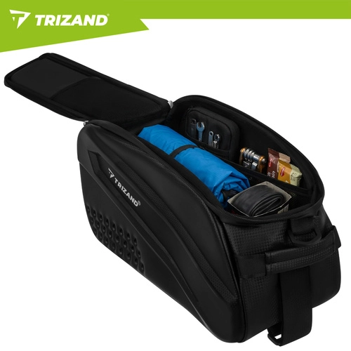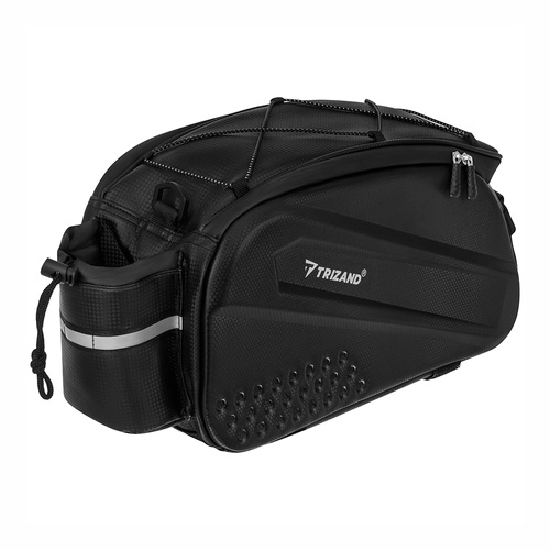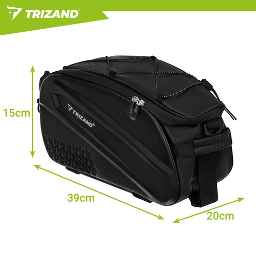 Praktična vodoodporna torba za zadnji prtljažnik TRIZAND s prostornino 10 l udobno sprejme orodje, zračnico, prigrizek in lahko jakno. Hitra montaža z ježki, odstranljiv ramenski trak, žep za plastenko in odsevni elementi zagotavljajo udobje in varnost med vožnjo.