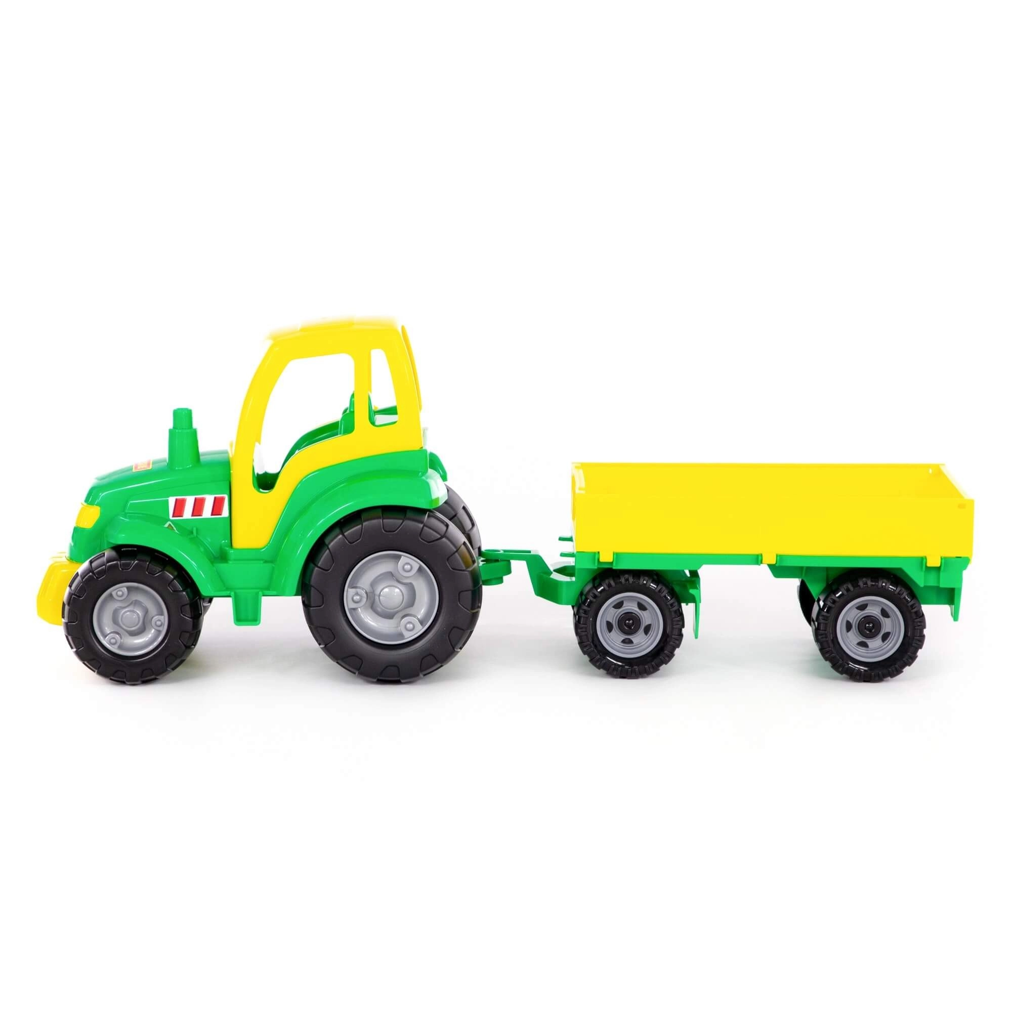 Odkrijte zabavo kmečkega življenja s tem robustnim plastičnim traktorjem s kesonom. Zahvaljujoč živahnim barvam, velikim kolesom in preprostemu upravljanju bodo otroci uživali v številnih igralnih scenarijih – od nakladanja in razkladanja do prevoza drobnih zakladov.