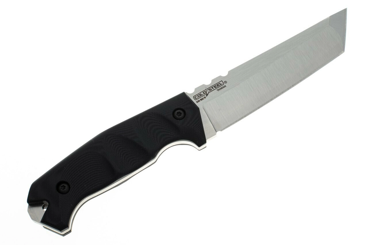 Iščete zanesljivo orodje za teren in službeno opremo? Taktični nož Cold Steel Warcraft Tanto ponuja odlično prebojnost in rezljivost zahvaljujoč tanto profilu in vrhunskemu laminiranemu jeklu San Mai III. Vzdržljiva full‑tang konstrukcija in ergonomski ročaj iz G10 zagotavljata zanesljiv oprijem tudi v zahtevnih razmerah.