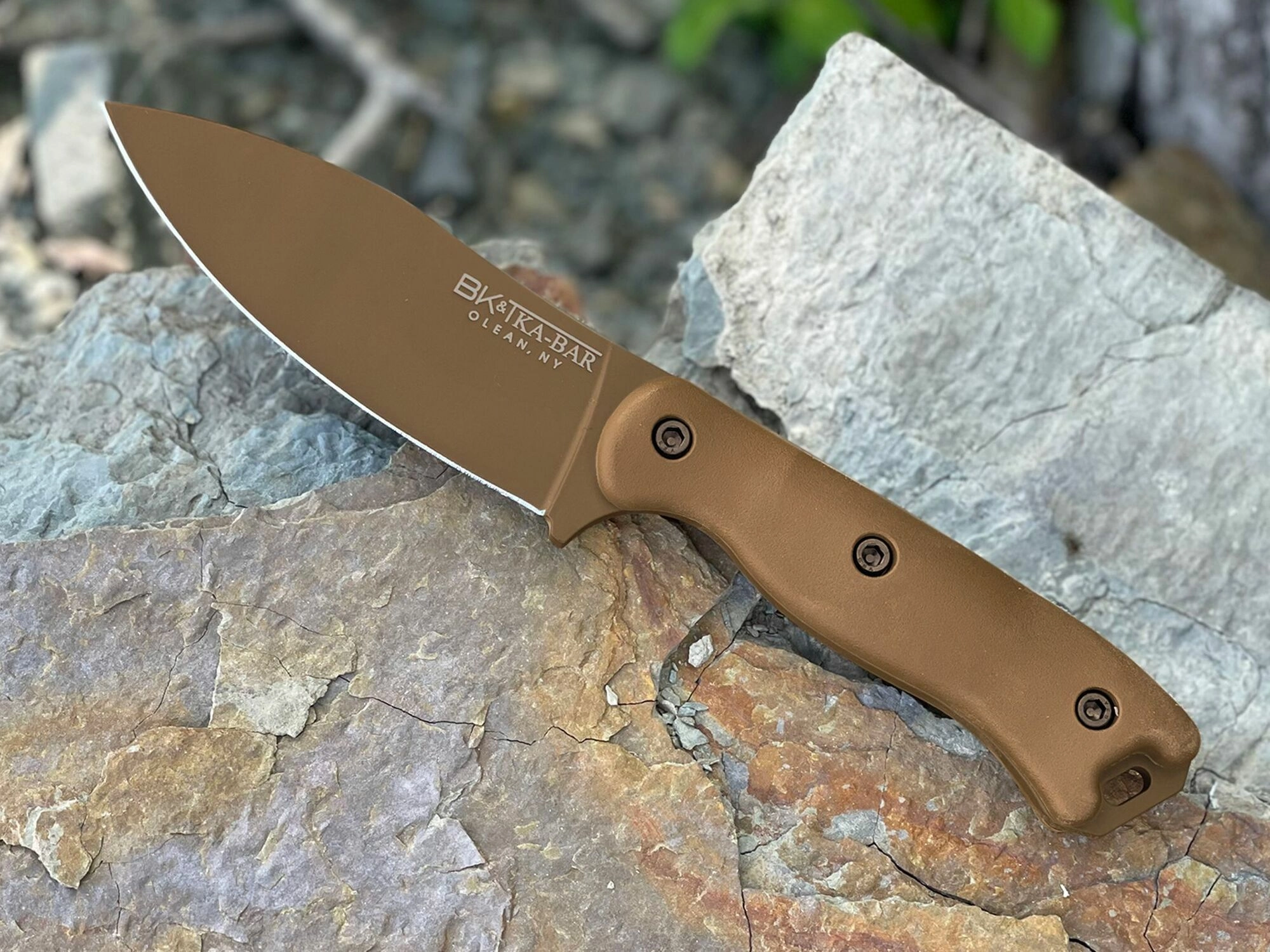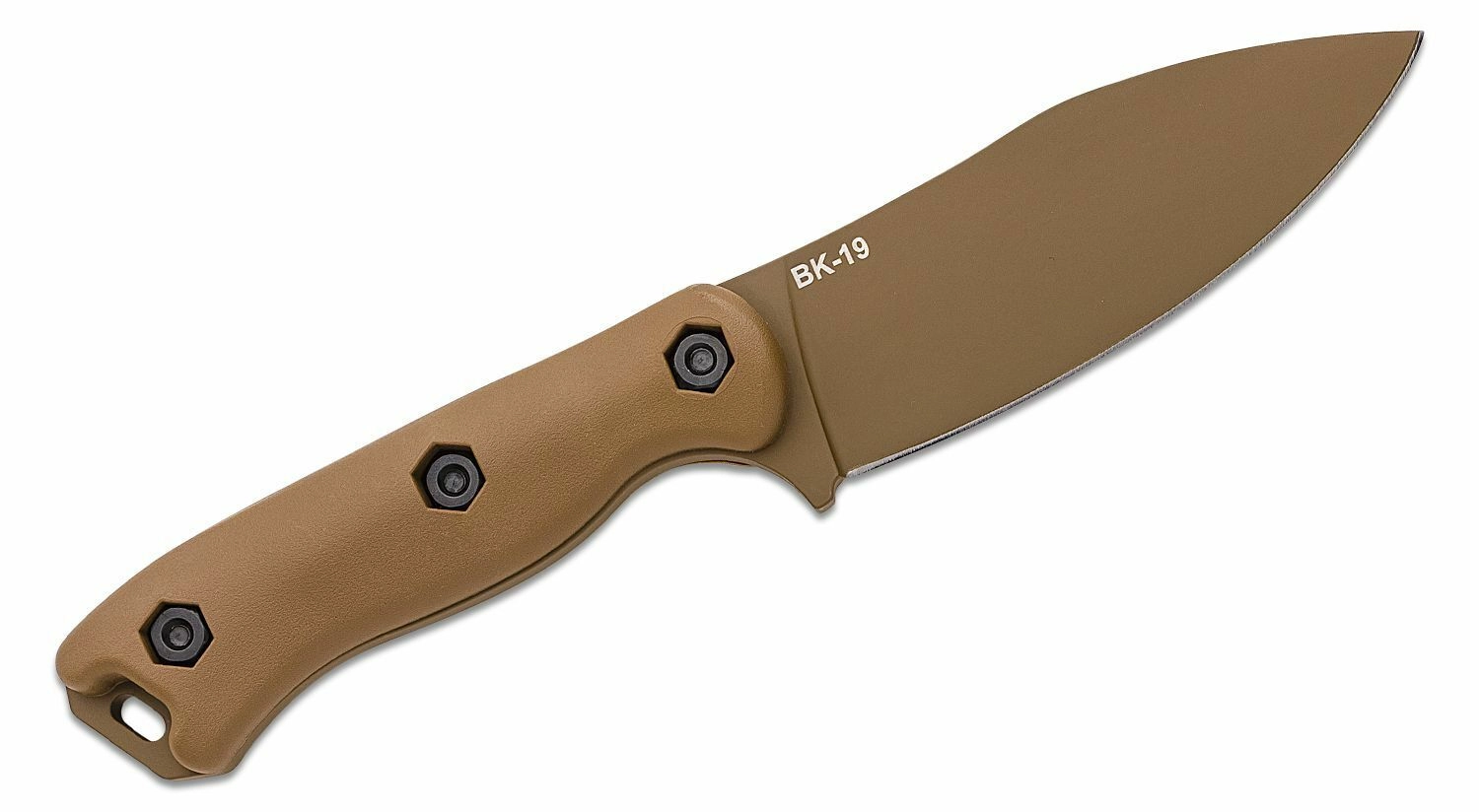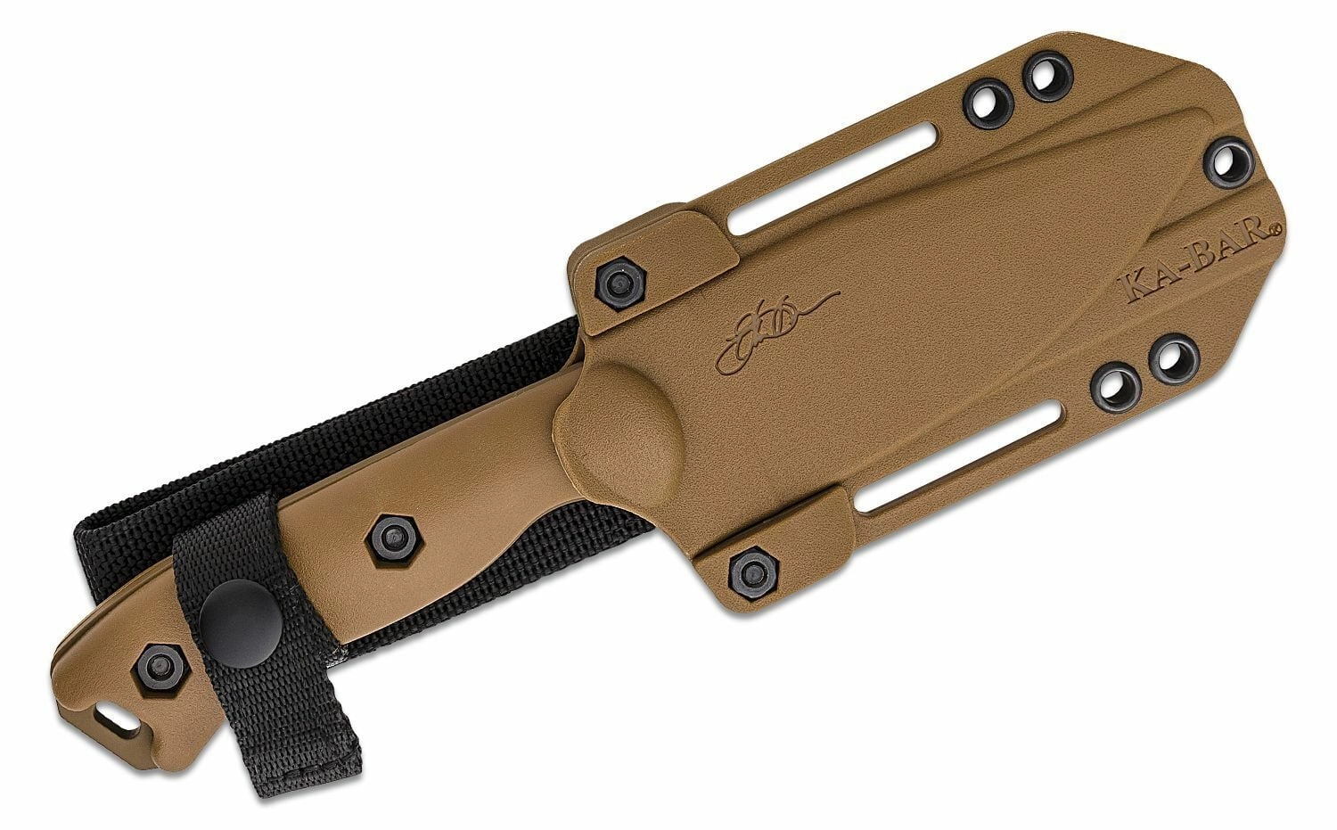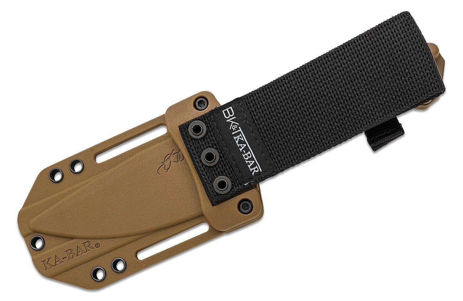 Polna full-tang konstrukcija povečuje trdnost in življenjsko dobo noža. Teksturirani ročajnici iz Zytela v peščeno rjavem odtenku zagotavljata udoben in zanesljiv oprijem tudi z rokavicami. Priložena je trpežna polimerna nožnica z več možnostmi pritrditve za varno in prilagodljivo nošenje na pasu ali opremi.