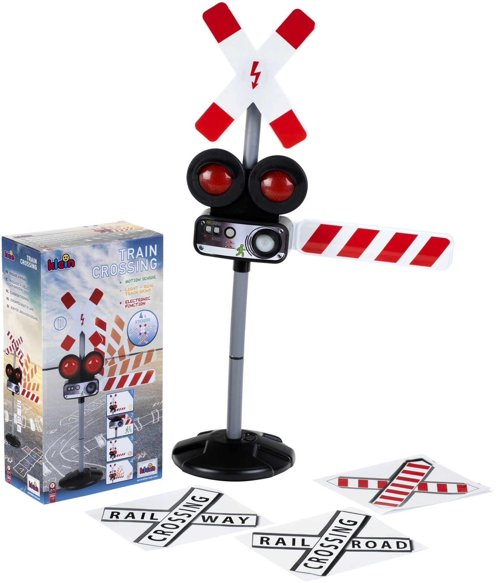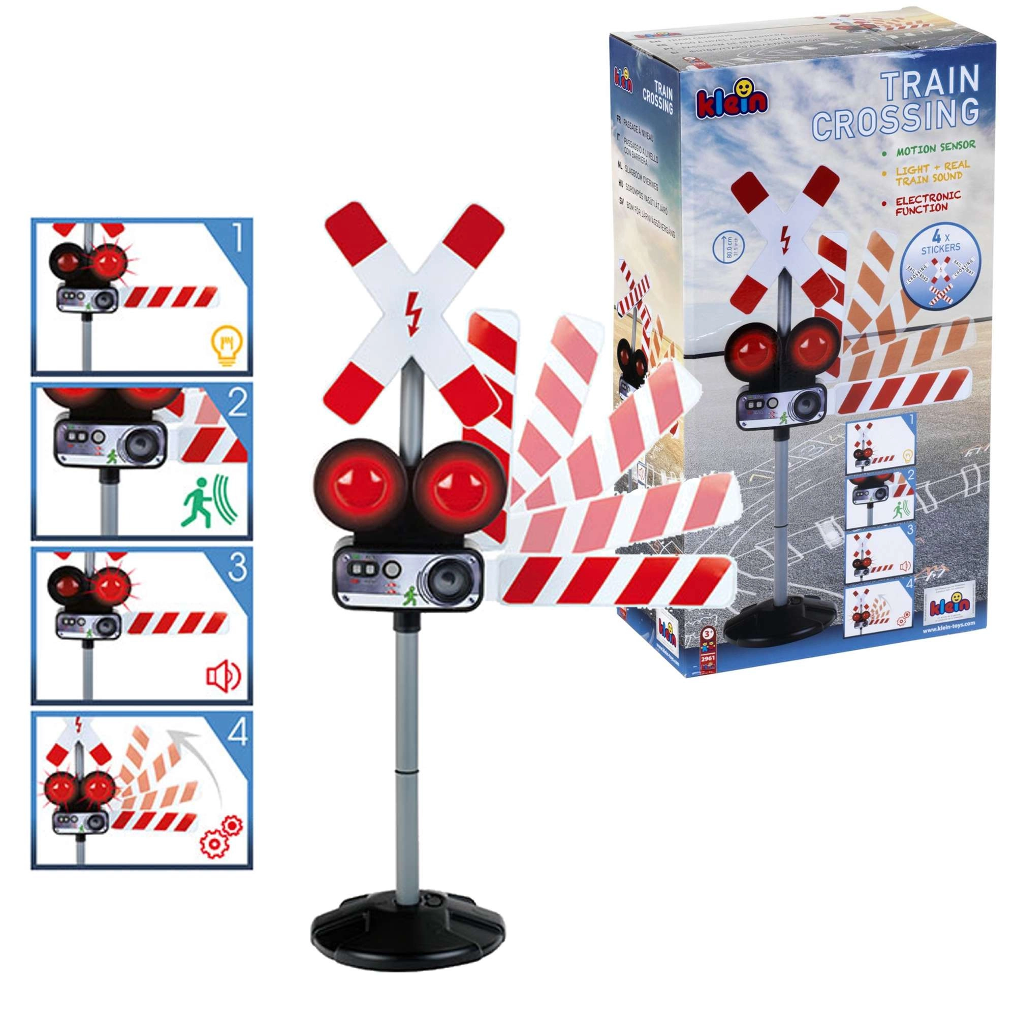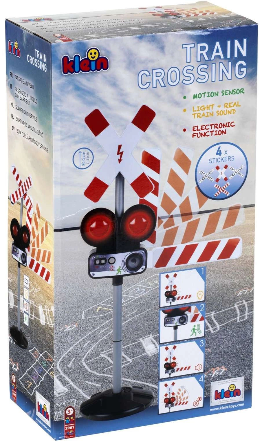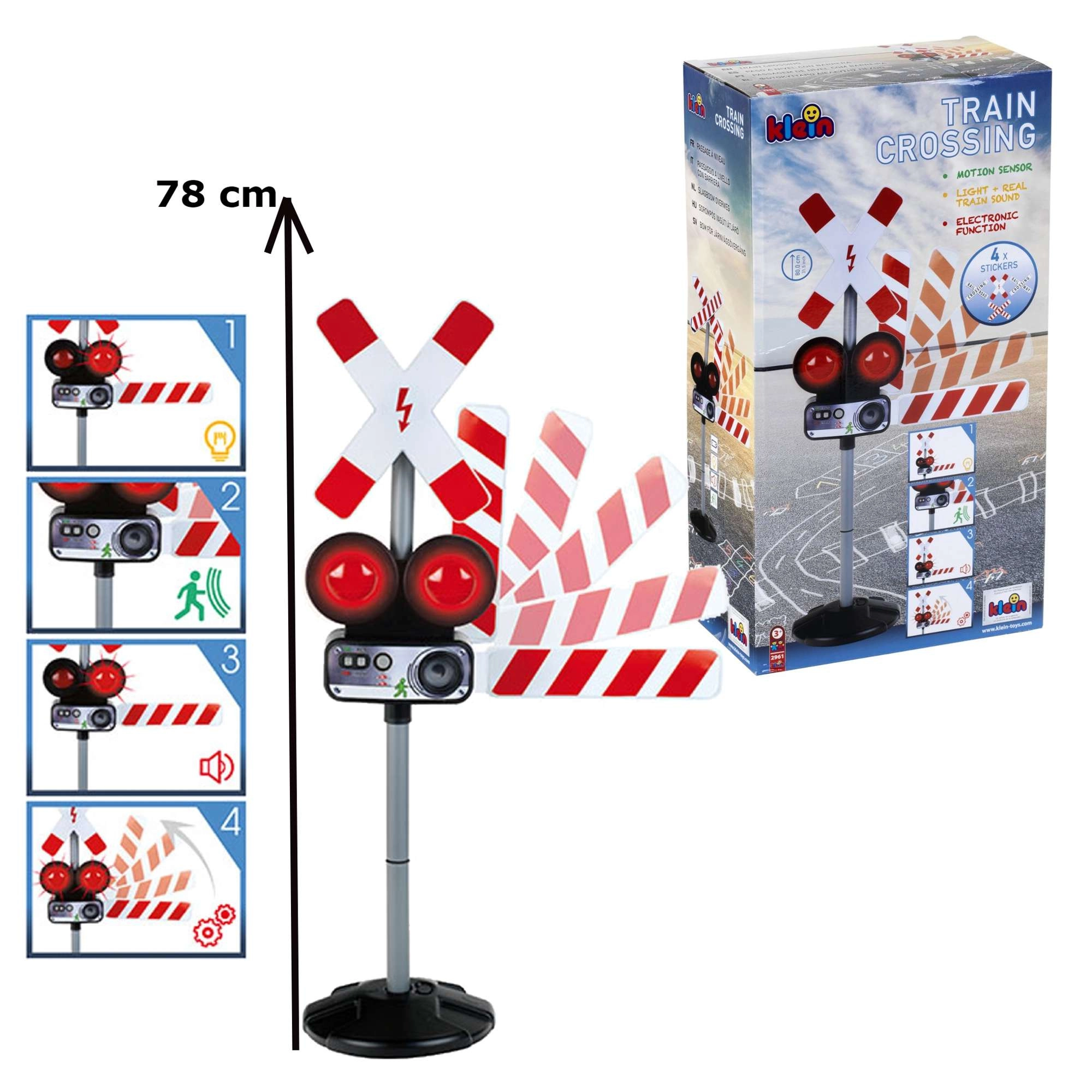 Interaktivni prometni znak znamke KLEIN realistično simulira železniški prehod – s svetlobno signalizacijo, zvoki vlaka in premičnim zapornim drogom. Z ročnim upravljanjem in senzorjem gibanja ponuja zabavno in izobraževalno igro, ki uči varnega vedenja v prometu. Idealno za otroke od 3 let dalje.