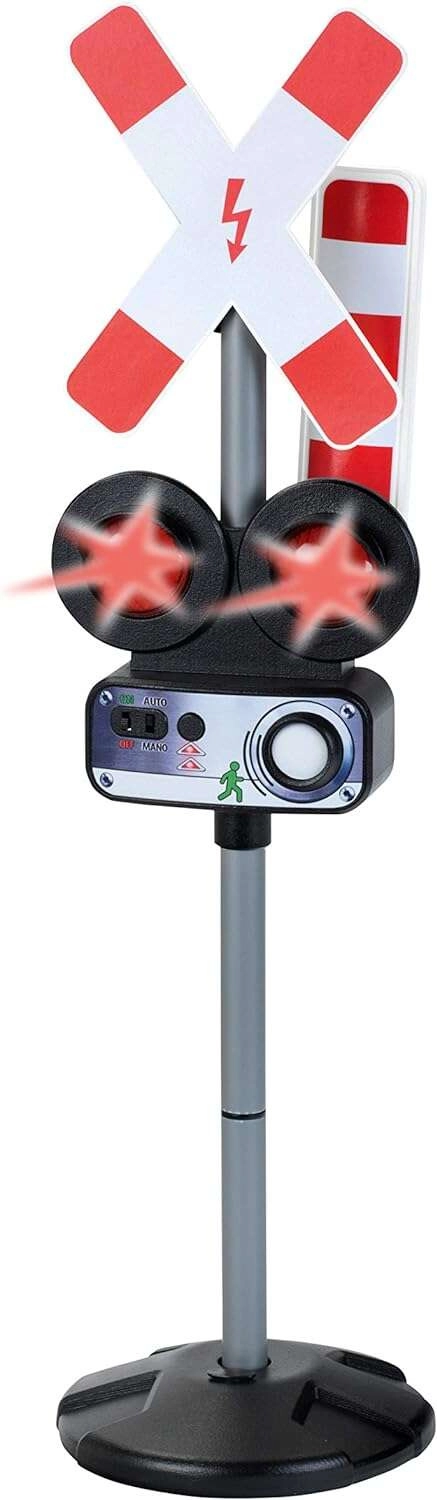 Ta realistični model prometnega znaka železniški prehod prinaša v otroško sobo avtentična doživetja: utripajoče rdeče luči, zvoke vozečega vlaka in spuščajočo se zapornico. Igrača podpira prometno vzgojo in pomaga otrokom razumeti pravila varnega prečkanja tirov.