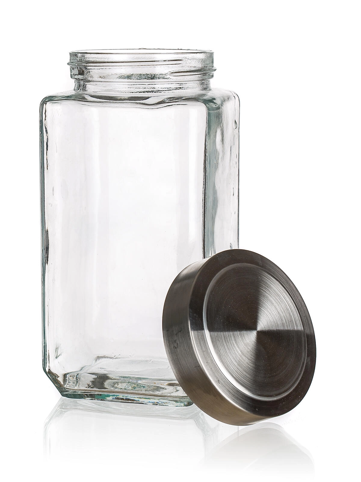 Steklena kvadratna doza AKCENT 1 l z nerjavnim pokrovom