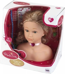 Ta glava za česanje z realistično videti blond lasmi je odlična za otroke, ki želijo izboljšati svoje frizerske veščine. Vadite pletenje kitk in ustvarjajte različne pričeske, ki jih polepšate s priloženimi dodatki.