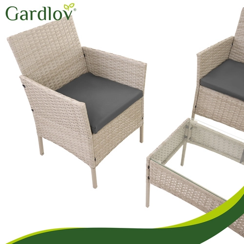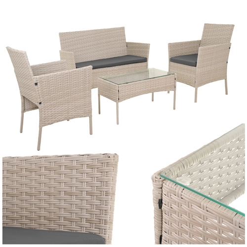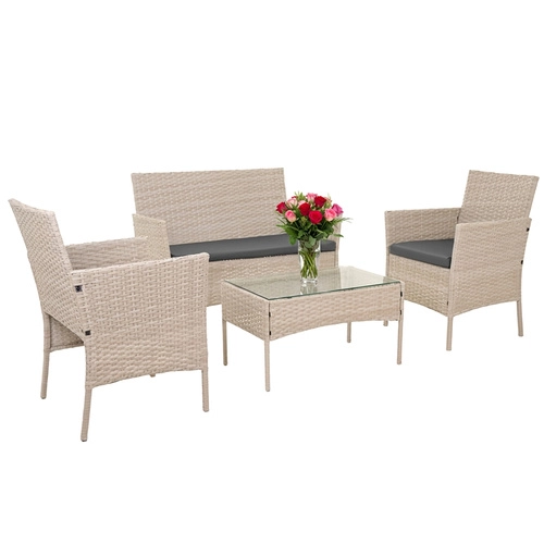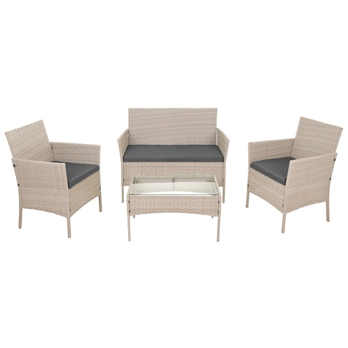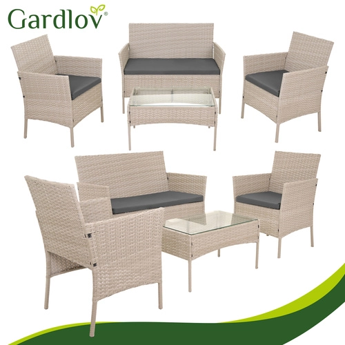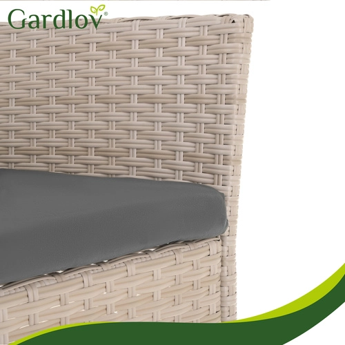 Eleganten vrtni set GARDLOV v bež barvi prinaša udobje in stil na teraso, balkon in v vrt. Vključuje 2 fotelja, dvosed in klubsko mizico s kaljenim steklom. Odporna pocinkana jekla konstrukcija s tehnoratanom, blazine z odstranljivimi prevlekami ter enostavno vzdrževanje zagotavljajo dolgo življenjsko dobo in brezskrbno uporabo.