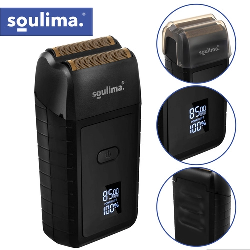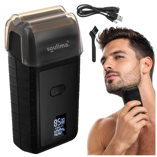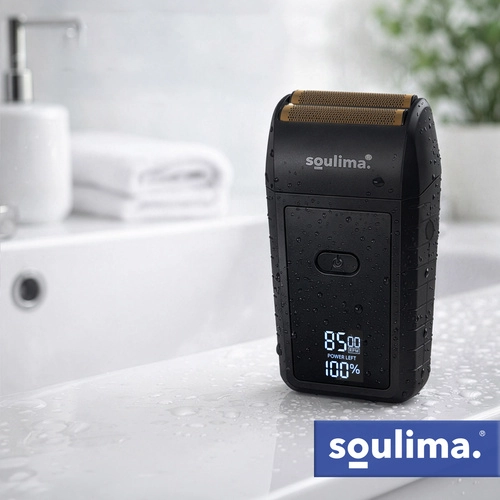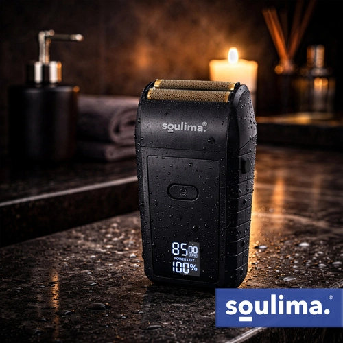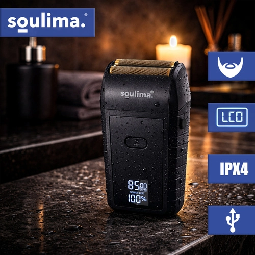 Kompaktni električni brivnik SOULIMA ponuja gladko in natančno britje zahvaljujoč dvojni foliji in dvema nerjavnima reziloma. LED-zaslon jasno prikazuje stanje baterije, polnjenje prek USB‑C olajša uporabo doma in na poti, tih način delovanja ter ergonomski oprijem pa zagotavljata udobje vsak dan.