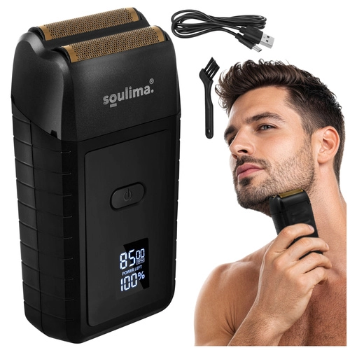 Uživajte v temeljitem britju brez draženja s kompaktnih brivnikom SOULIMA. Dvojna folija in dve ostri nerjavni rezili ujamejo kratke in daljše dlake, medtem ko vas LED-zaslon sproti obvešča o preostali kapaciteti. Zahvaljujoč polnjenju prek USB‑C in trpežni zasnovi je idealen tako za kopalnico kot za potovalno torbo.