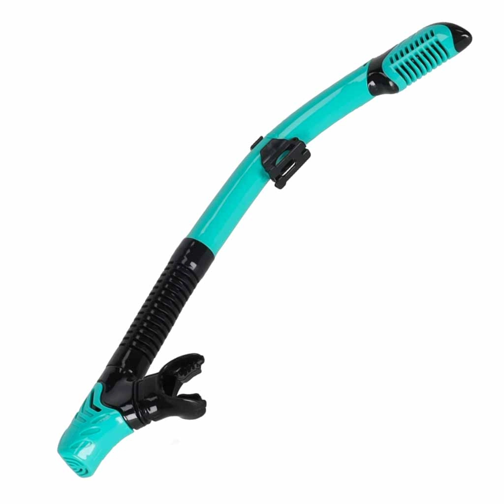 Dry-top zaščita omejuje vdor vode od zgoraj, izpustni (purge) ventil pa olajša izpihovanje. Ergonomska krivulja in mehak silikonski ustnik povečujeta udobje pri daljšem plavanju.